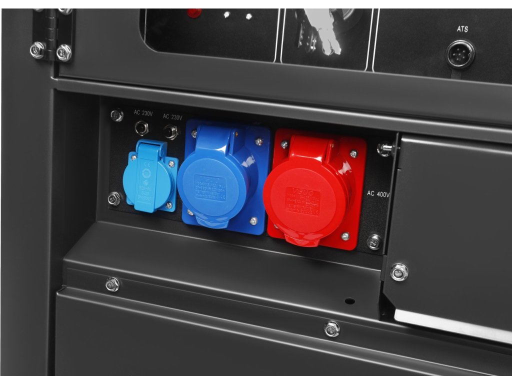 - ✅ Tři výstupní konektory – 230V, 230V 32A a třífázový 400V.
