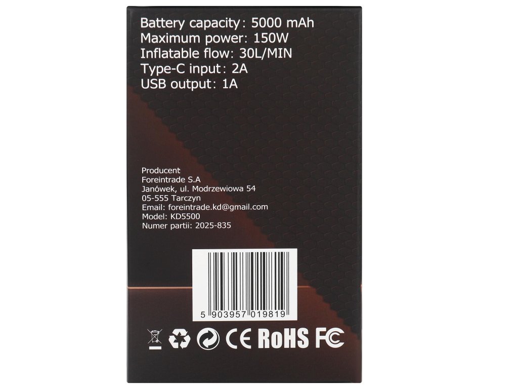Zajistěte si naprostou nezávislost a klid na cestách i v každodenním životě s revolučním akumulátorovým kompresorem Kraft&Dele KD5500. Toto moderní, multifunkční zařízení je navrženo pro maximální pohodlí a spolehlivost. Díky kompaktní konstrukci, vysokému výkonu a integrované baterii o kapacitě 5000 mAh získáte plnou mobilitu a svobodu od externích zdrojů napájení, ať už jste kdekoli.