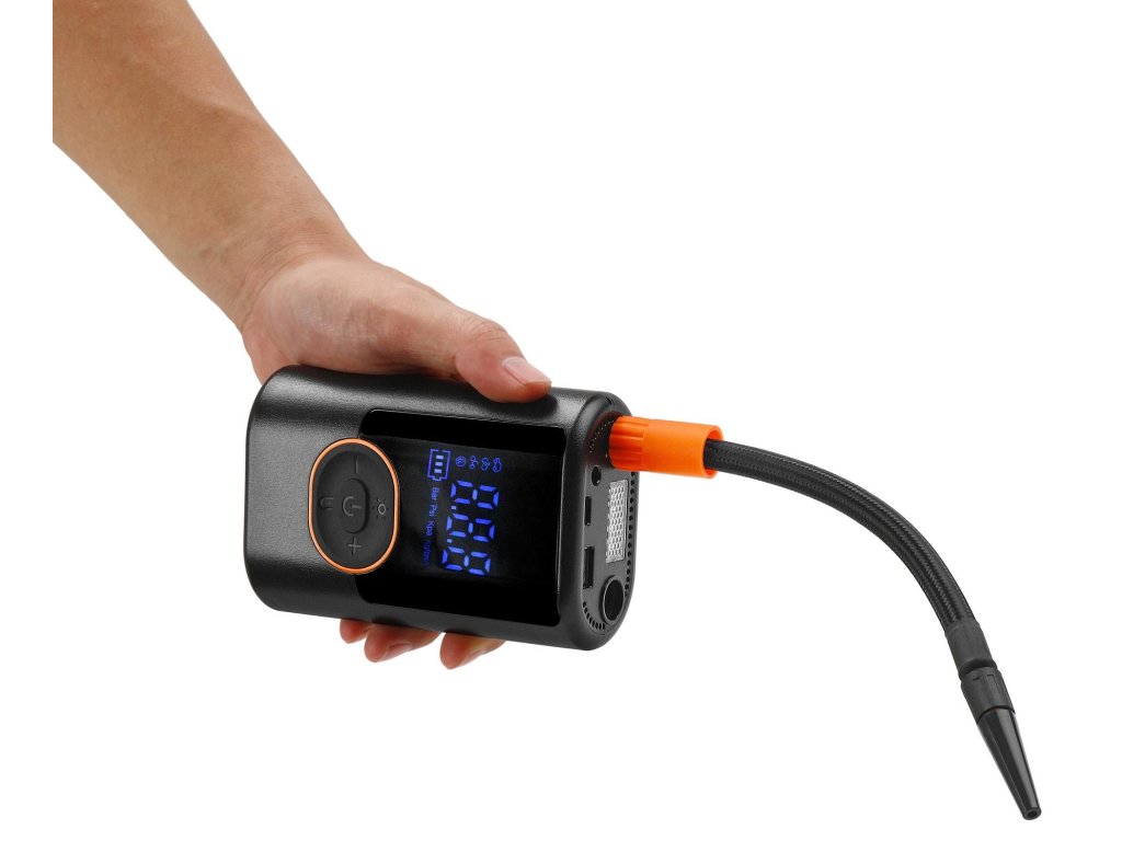 - Výkonný akumulátorový kompresor s kapacitou 5000 mAh