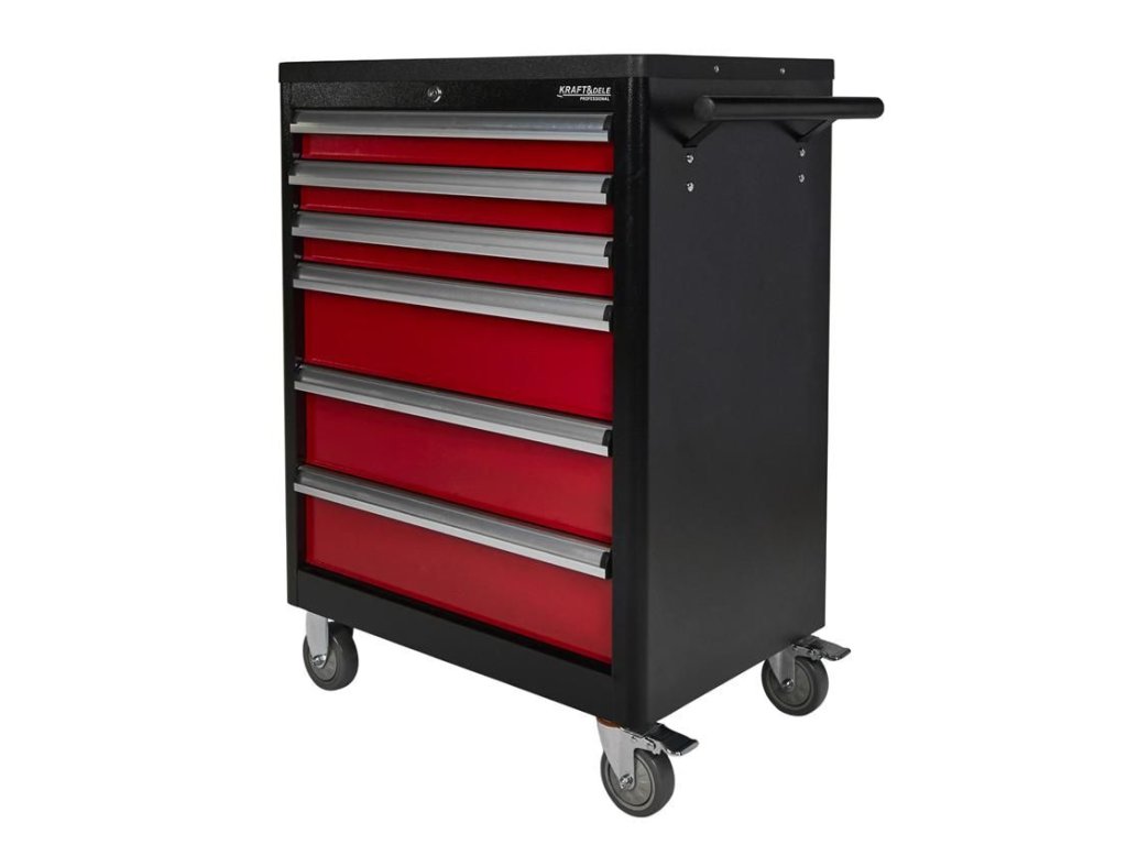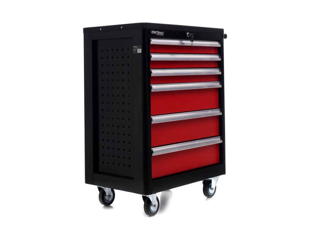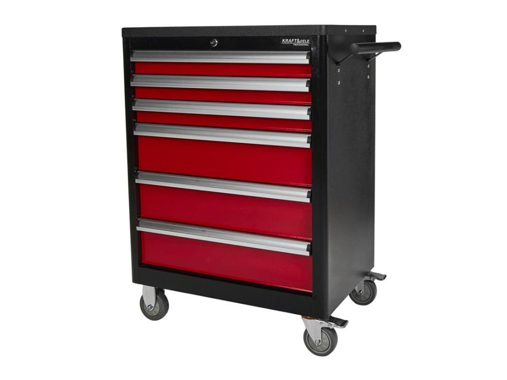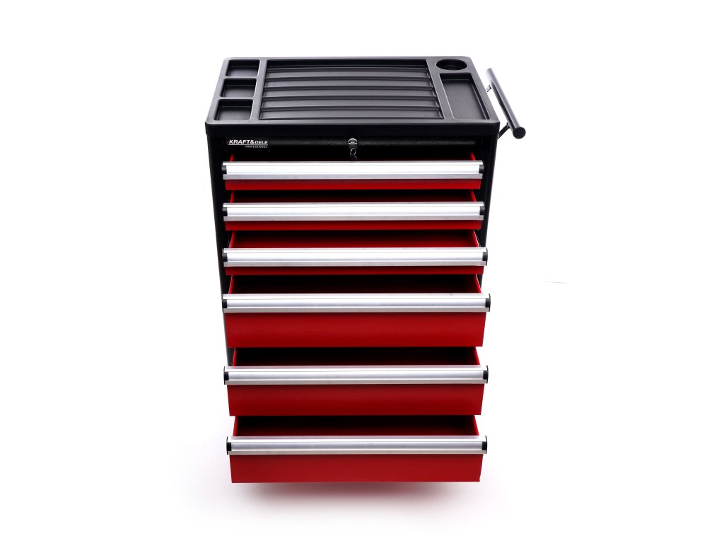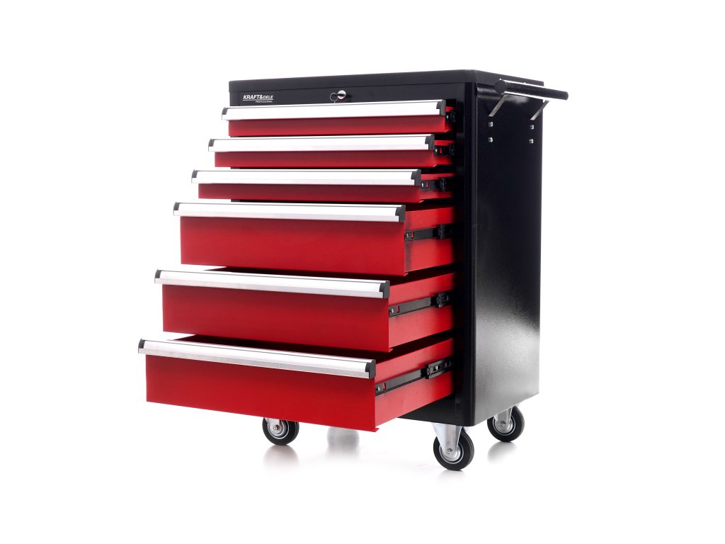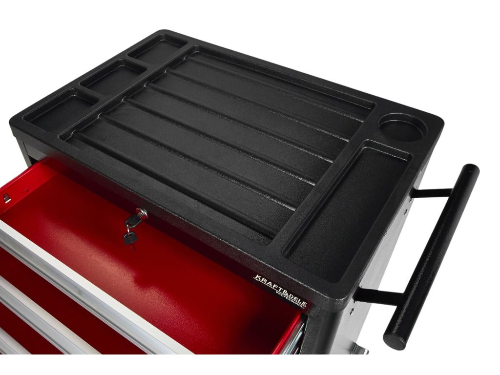 Bezpečnost a ochrana jsou klíčové. Každá zásuvka disponuje pojistkou proti náhodnému otevření a lze ji uzamknout klíčem, což chrání vaše cenné nářadí. Pro maximální ochranu karoserie automobilů a okolního vybavení je vozík opatřen gumovými odrazníky, zabraňujícími poškození při nárazu. S tímto dílenským vozíkem od Kraft&Dele získáte organizaci, klid a efektivitu.