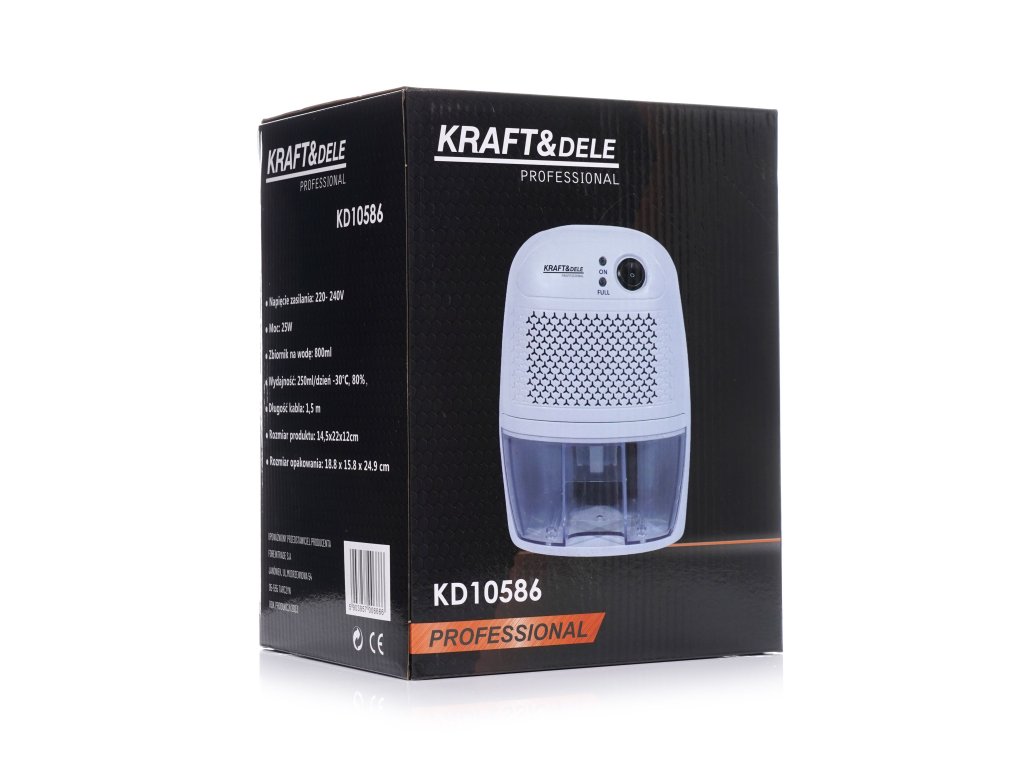 Model KD10586 od značky Kraft&Dele spolehlivě ochrání vaše prostředí před plísněmi, zatuchlým vzduchem a poškozením způsobeným vlhkostí. Je perfektní volbou pro menší místnosti, jako jsou kanceláře, koupelny, ložnice nebo šatny, kde je prostor často omezený. S denním výkonem až 250 ml efektivně udržuje optimální úroveň vlhkosti, čímž přispívá k lepšímu zdraví a pohodlí. Jeho nízká spotřeba energie, pouhých 25W, zajišťuje ekonomický provoz, zatímco automatické vypnutí při plné nádržce na vodu s objemem 800 ml přináší klid a bezstarostné používání.