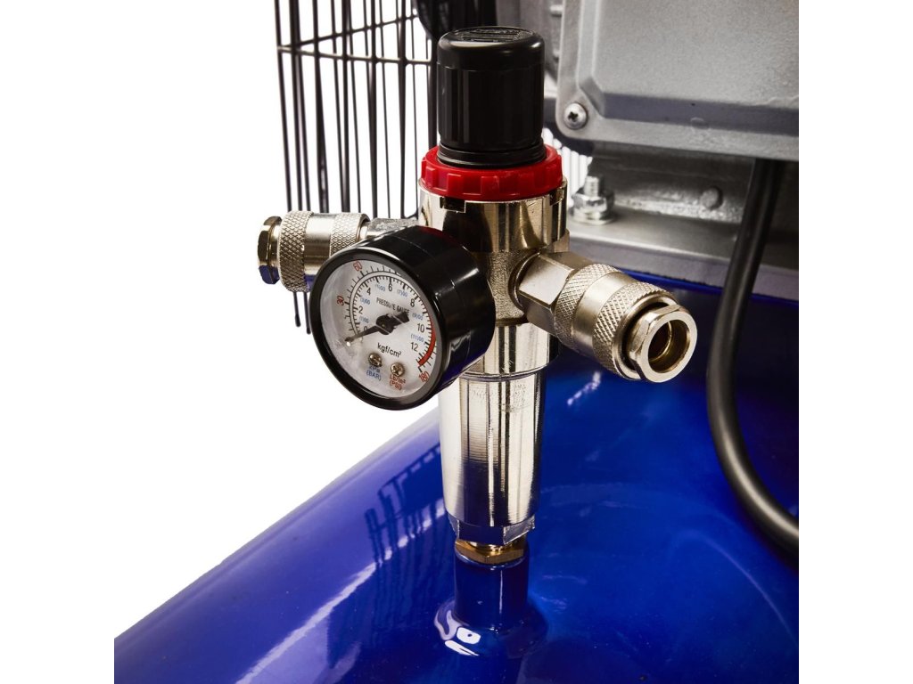 Integrovaný separátor účinně zachycuje olej a vodu z vyfukovaného vzduchu, čímž chrání vaše nářadí a zajišťuje čistší pracovní prostředí. Kvalitní materiály, jako je měděné vinutí motoru a litinový válec, jsou zárukou dlouhé životnosti a bezpečné práce.