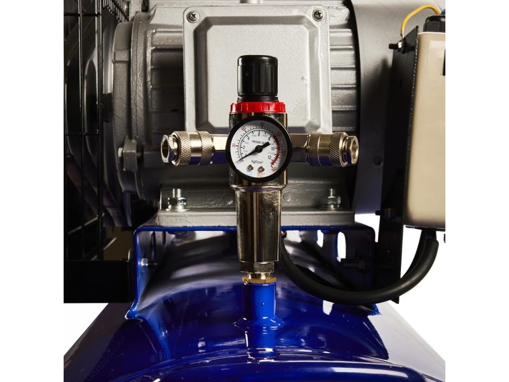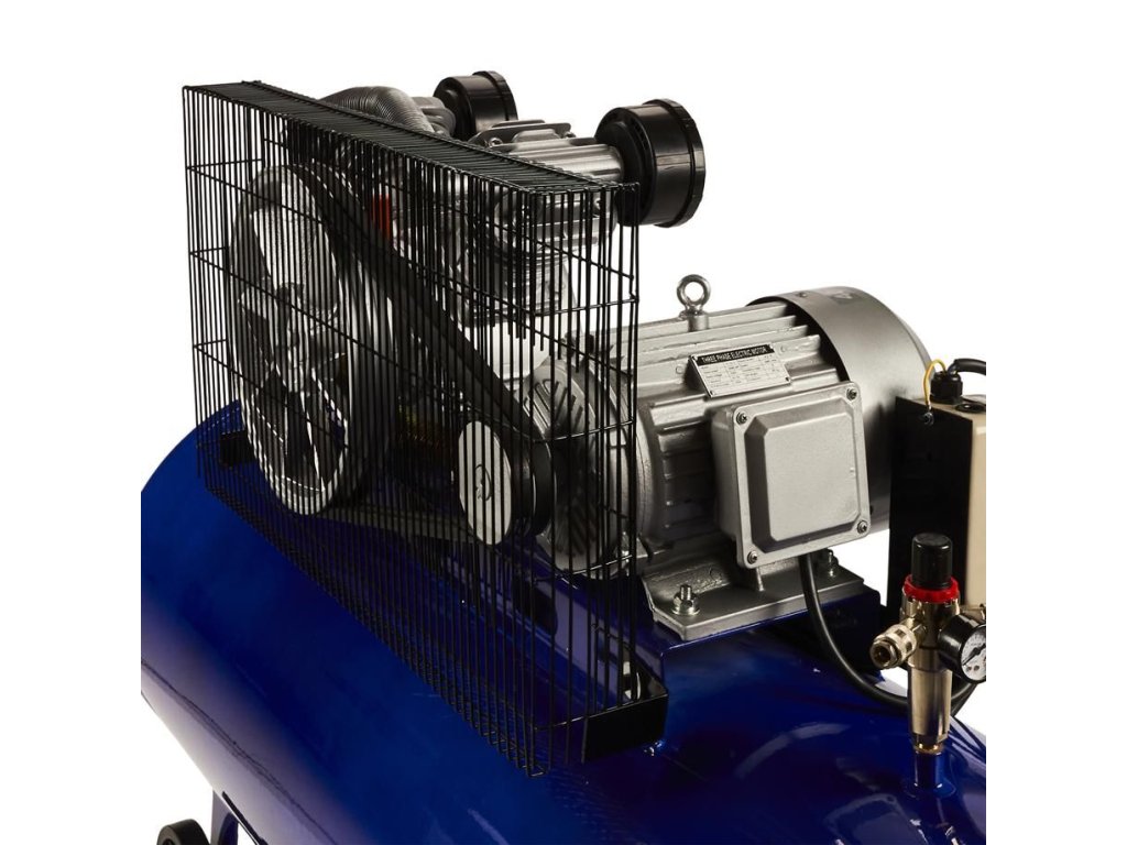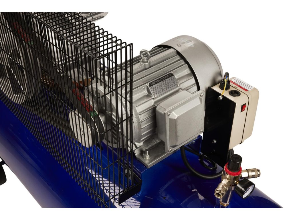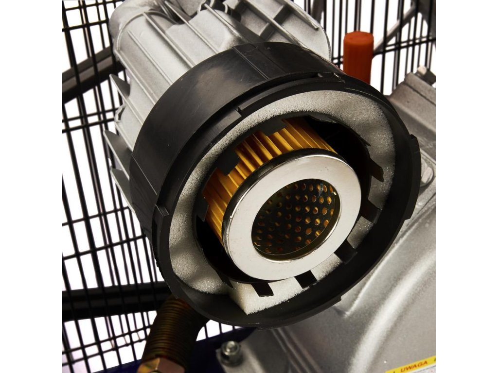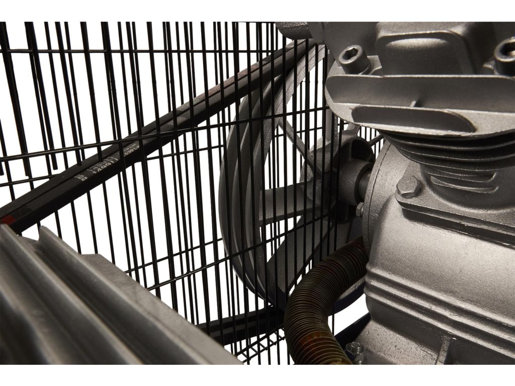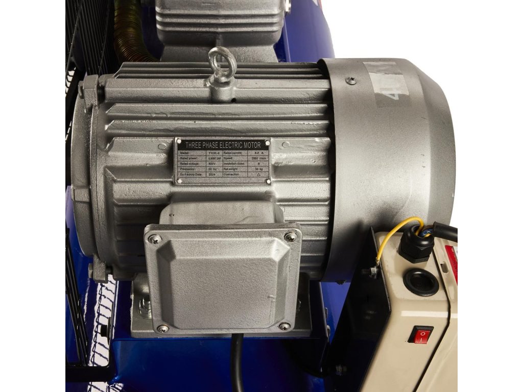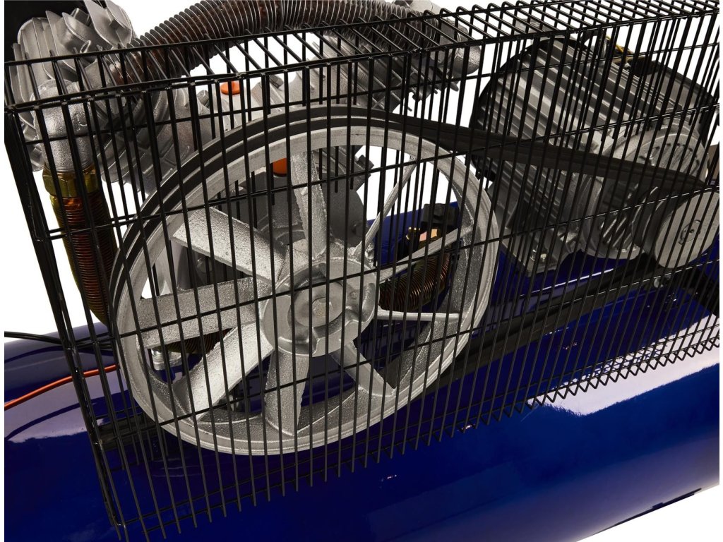 Srdcem stroje je vysoce výkonný dvoupístový motor o síle 7,5 HP, zajišťující dostatečný tlak a průtok vzduchu pro efektivní práci. Je ideální pro huštění, čištění, ofukování, lakování a synergii s pneumatickým nářadím. Zvětšený průměr pístů zajišťuje vynikající průtok vzduchu 820 l/min a předchází ucpávání. Dvoupístový motor zaručuje dlouhodobý a intenzivní provoz.