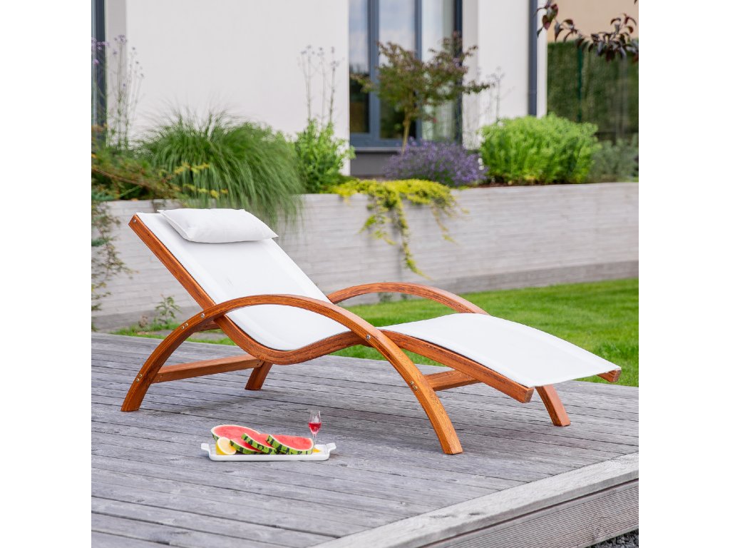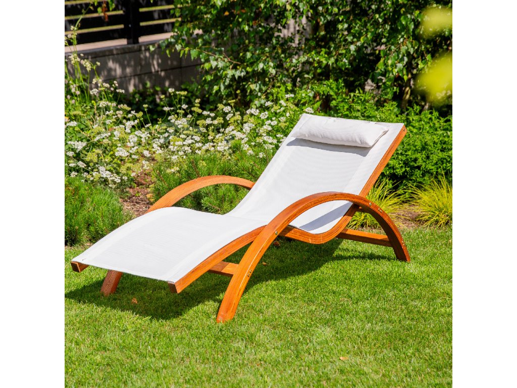 Zahradní lehátko je vybaveno masivním rámem z modřínového dřeva. Sedadlo, opěradlo a polštářek, v krémové barvě, jsou vyrobeny z černého textilenu s výpletem 2x1, což zaručuje pohodlí při používání. Rám lehátka, vyrobený z vysoce kvalitního modřínového dřeva, je natřen teakovým, tungovým olejem a je nalakován. Tato konečná úprava jej nejen činí odolným vůči povětrnostním vlivům, ale také mu dodává stylový vzhled. Záhlavní polštář, vyrobený z odolného textilenu, zaručuje pohodlí a podporu hlavy, což vám umožní plně relaxovat při odpočinku venku. Nohy lehátka, ohnuté do oblouku, dodávají nábytku nejen estetický vzhled, ale také fungují jako područky. Lehátko je určeno pro venkovní použití, ale potřebuje ochranu před vlhkostí, aby se udrželo co nejdéle v top stavu. Lehátko je vyráběno pro privátní uživatele a je určeno pro samostatnou montáž, což vám umožňuje přizpůsobit jej individuálním potřebám a preferencím. Pro zvýšení bezpečnosti a prodloužení životnosti nábytku se doporučuje používat jej na rovném a tvrzeném povrchu.