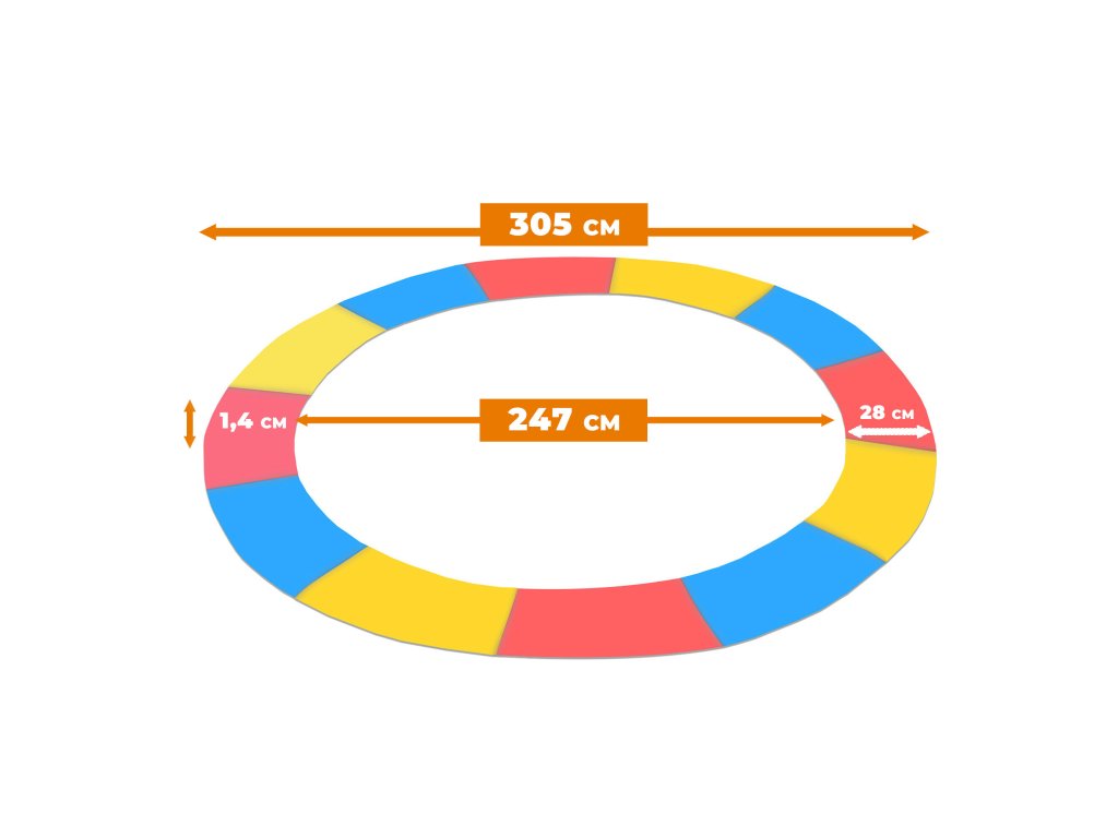 Zajistěte maximální bezpečnost a prodlužte životnost vaší trampolíny s univerzálním krytem pružin Aga Trikolóra, navrženým pro průměry 300, 304 a 305 cm (10 ft). Tento polstrovaný obvodový pás je klíčovým prvkem pro bezstarostné skákání, neboť spolehlivě překrývá všechny pružiny a chrání tak před nechtěným kontaktem a zraněním. S tloušťkou polstrování přibližně 15 mm efektivně utlumí jakýkoliv pád či náraz, což z něj činí ideální volbu pro rodiny s dětmi, kde je bezpečnost na prvním místě.