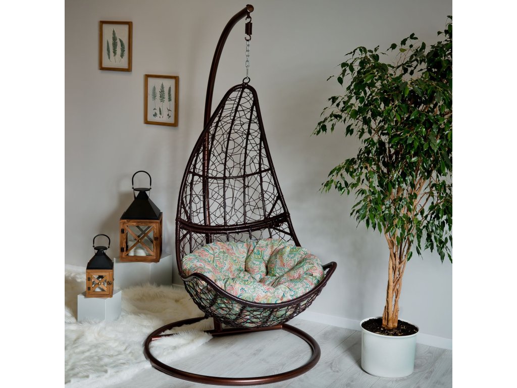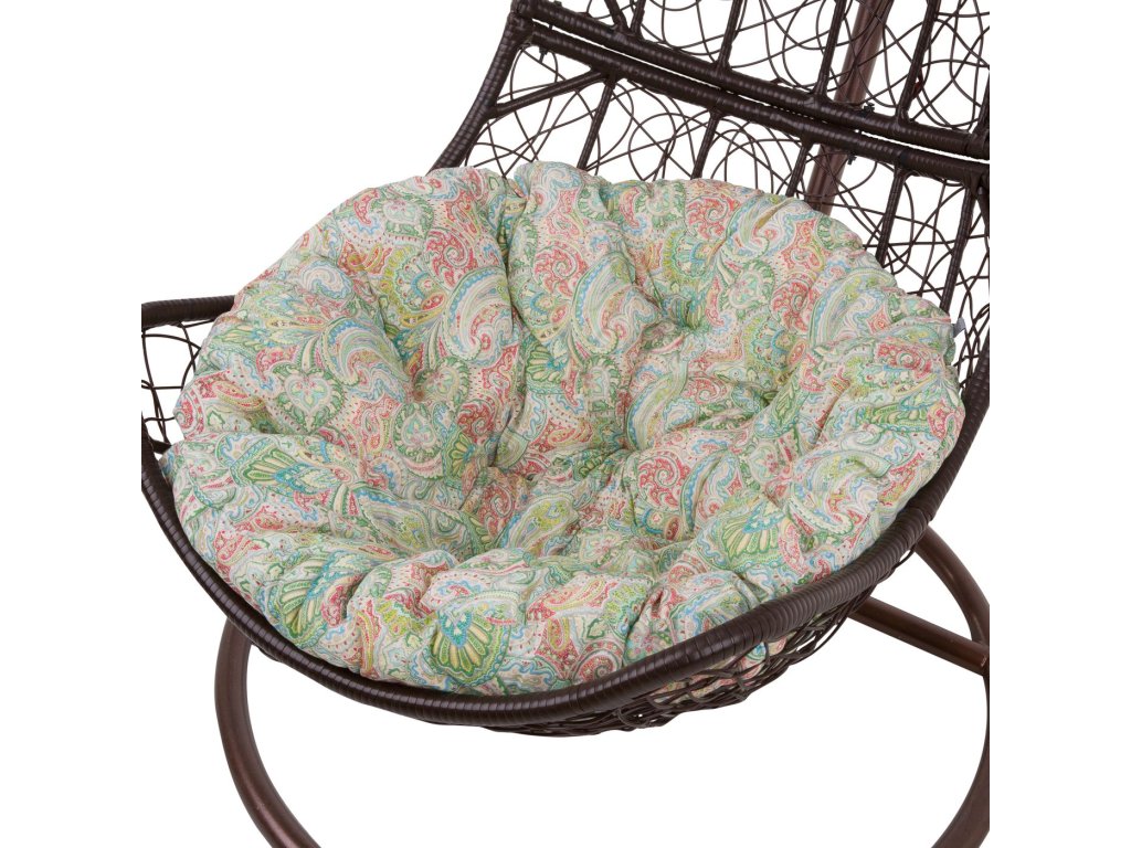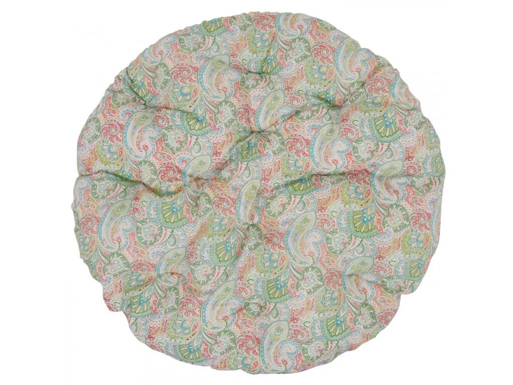 Praktický kulatý sedák do závěsného křesla. Tvar a velikost umožňuje použití i na jiný zahradní nábytek. Sedák je vyroben z bavlněno-polyesterové tkaniny. Díky vysokému obsahu bavlny (přibližně 70%) s kombinaci s polyesterovými vlákny je tkanina příjemná na dotek.