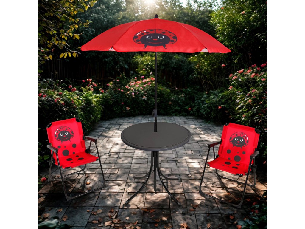 Nábytek zdobený zvířátkem budou děti používat celou letní sezónu a trávit tak spoustu času na čerstvém vzduchu. Pohodlně se usadí na pestrobarevná sedátka a příjemně posvačí u kulatého stolečku. Navíc budou díky slunečníku ve stínu, kde si budou v klidu hrát, číst nebo hostit své návštěvy.