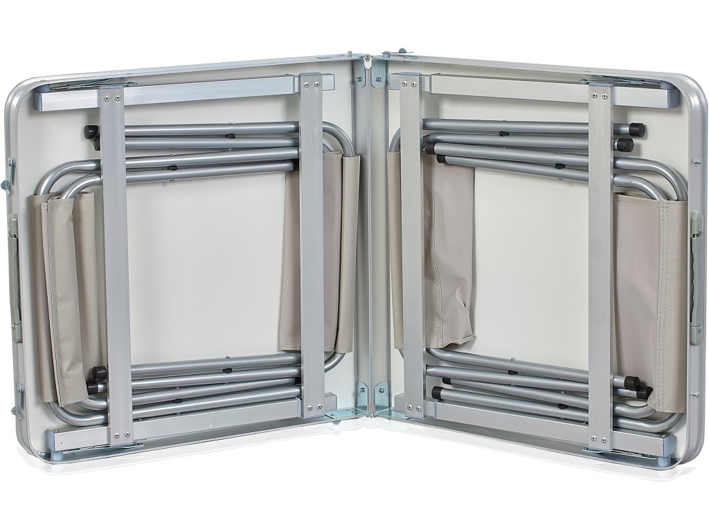 Lehký hlinikový kempingový set v moderním designu, je ideálním řešením na dovolené, cestování, nebo pro kempingové účely.