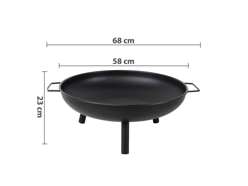 Ohniště je vyrobené z oceli o průměru 58 cm. Pro zaručení maximální stability je vybaveno třemi podstavci ohniště se tak nekymácí ani nepřevrací.