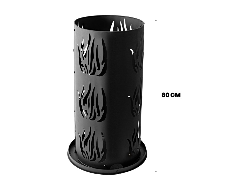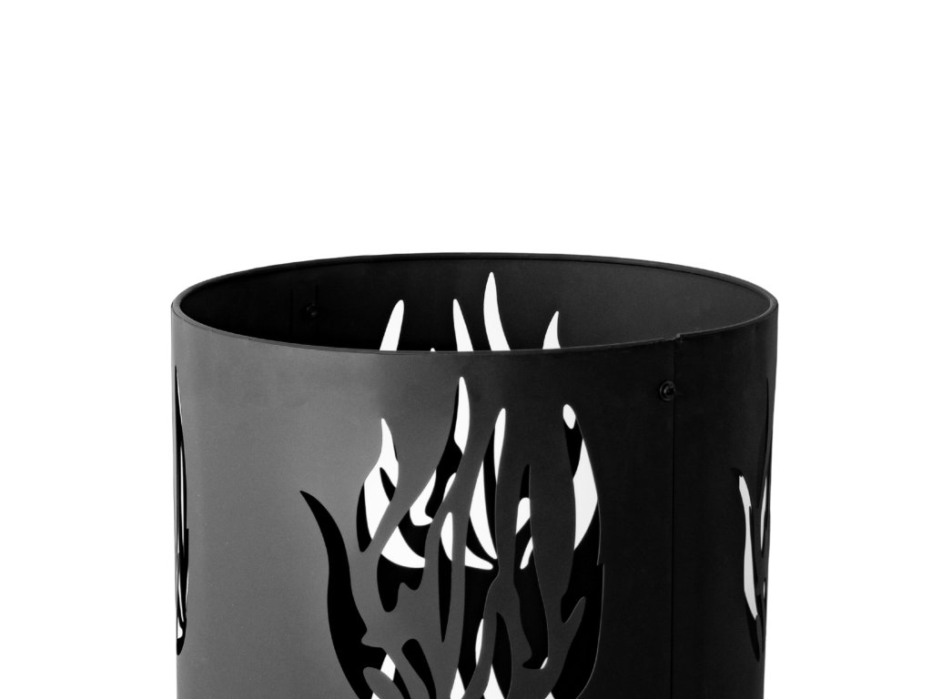 Toto kovové ohniště nabízí nejen efektivní hoření díky ventilaci, ale také vytváří atmosférické osvětlení zásluhou dekorativních otvorů ve tvaru plamene.