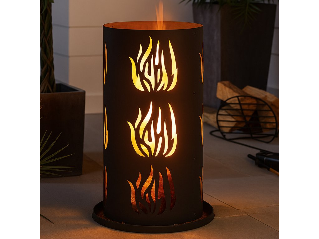 Stylové zahradní ohniště s dekorativními výřezy ve tvaru plamenů je ideální volbou pro letní večery na zahradě.