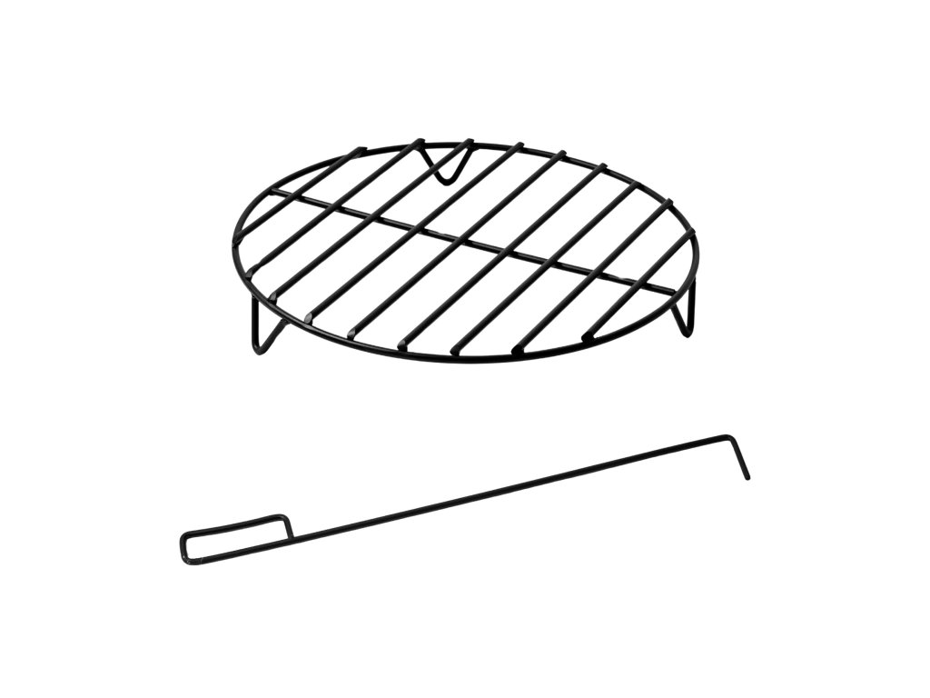 Součástí ohniště je grilovací rošt, který vám umožní připravit lahodné pokrmy přímo nad plameny. K dispozici je také pohrabáč, který usnadňuje manipulaci s uhlíky a dřevem, což zajišťuje bezpečné a pohodlné používání.
