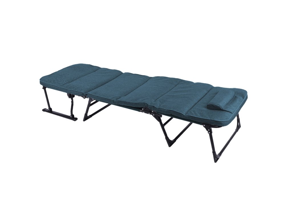 Potah lehátka je vyroben z odolného polyesteru Oxford 600D, který je známý svou pevností a odolností vůči opotřebení. Tento materiál je navíc snadno udržovatelný, což zajišťuje, že vaše lehátko bude vypadat jako nové i po dlouhodobém používání. Dodatečné polstrování o tloušťce cca 3 cm a přiložený polštář zajišťují, že se budete cítit pohodlně a uvolněně, ať už si lehátko nastavíte jakkoli.