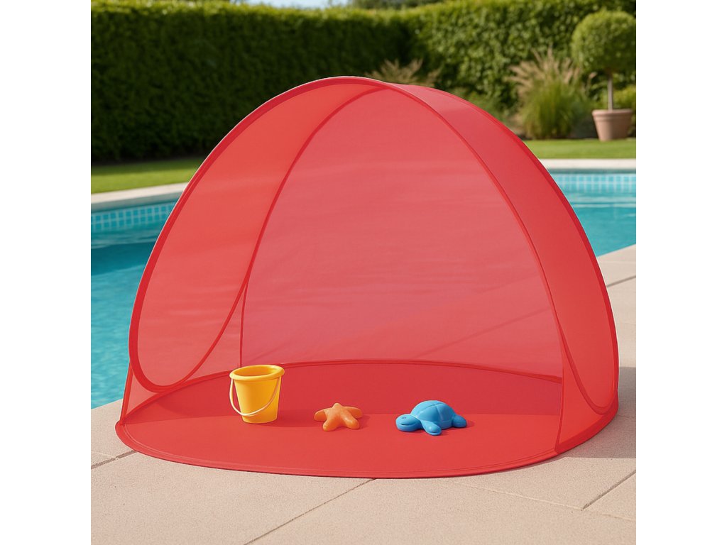 Plážový stan využijete nejen během dovolené u moře, ale také na veřejném koupališti, nebo u bazénu na zahradě.