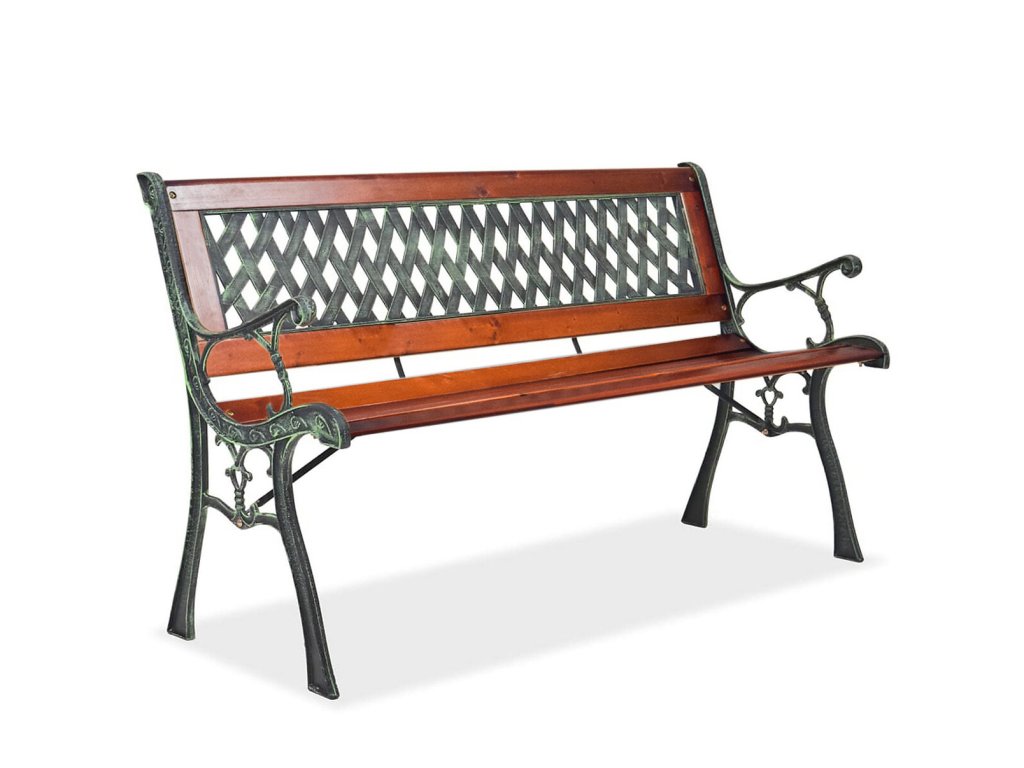 Pevná litinová konstrukce, která je doplněna o dřevěné latě. Nosnost lavice 150 kg.
