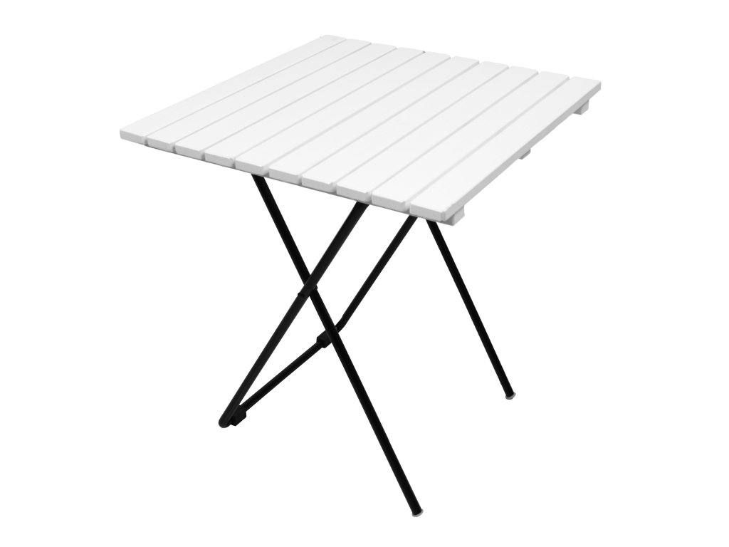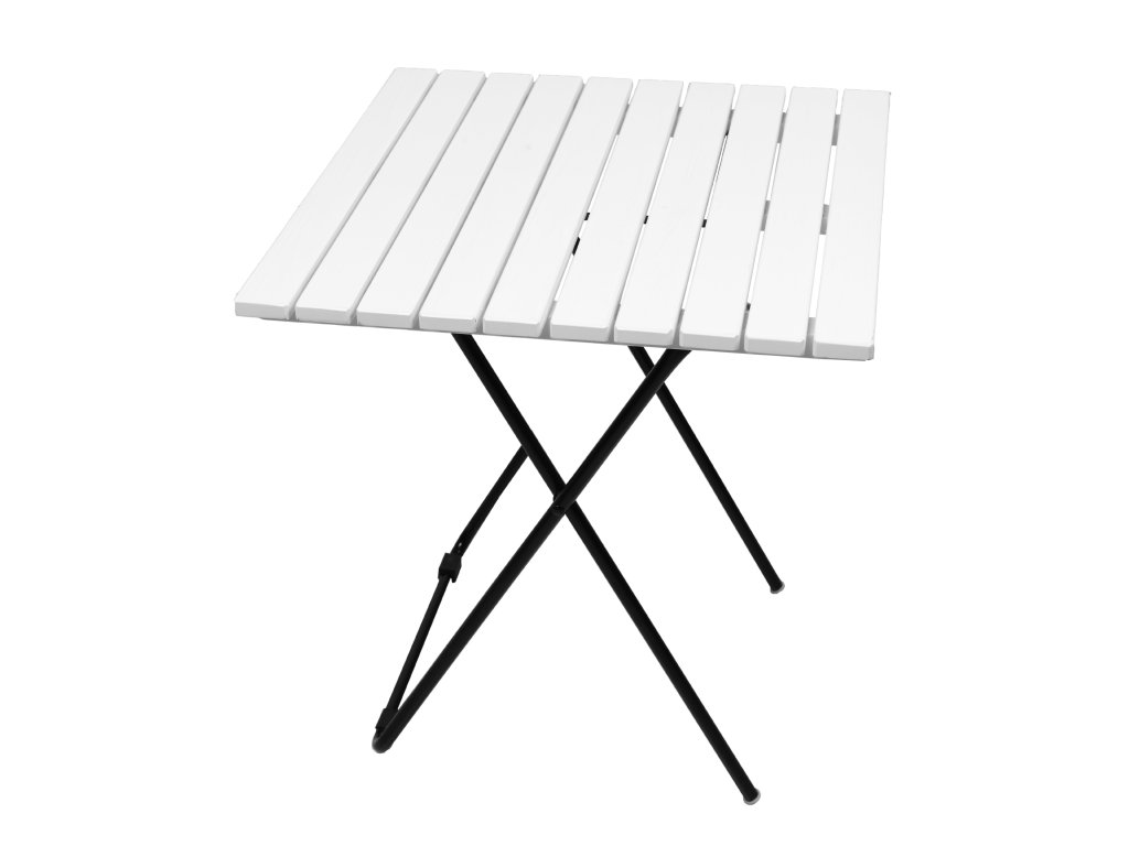 Skládací zahradní stolek s pevným kovovým rámem a dřevěnou deskou, ideální pro zahrady, terasy, altány, balkóny, ale také do interiéru restaurací a kaváren.