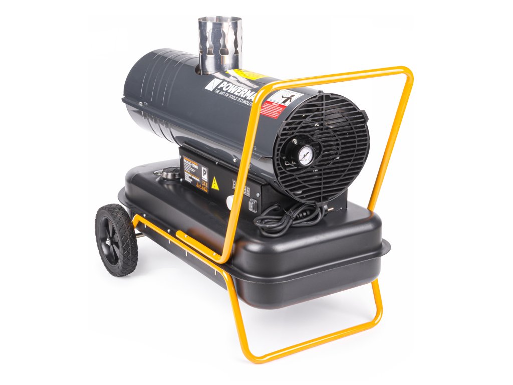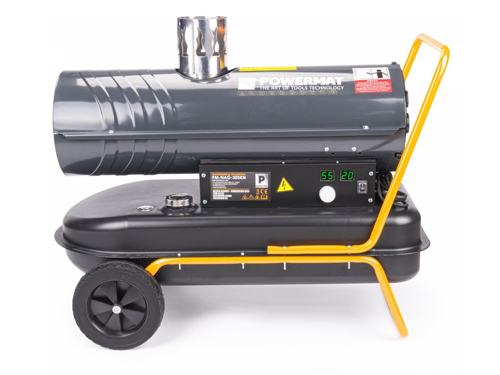 Mobilní naftové topidlo, ohřívač, 30 kW s odvodem splodin, termostatem a LCD displejem PM-NAG-30SKN, Powermat PM1013