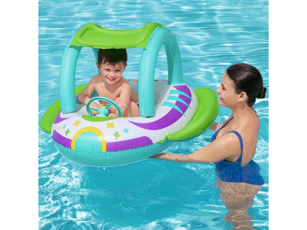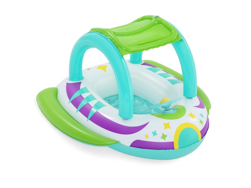 Nafukovací člun Bestway je určen pro děti od 3 do 6 let. Vyrobený z pevného a odolného vinylu, zajistí skvělou a bezpečnou zábavu. Další atrakce poskytne vestavěný volant s klaksonem. Další výhodou je odnímatelná stříška.
