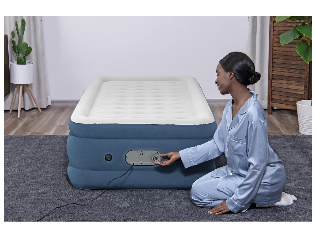Klíčem k jeho výjimečnosti je inovativní pumpa AlwayzAire, která automaticky monitoruje a udržuje optimální tlak vzduchu po celou noc. Zapomeňte na nepříjemné probuzení na podlaze – matrace se nikdy nezapadne! Povrch z jasného, měkkého veluru je nejen příjemný na dotek, ale také se snadno udržuje v čistotě, což oceníte při každodenním používání.