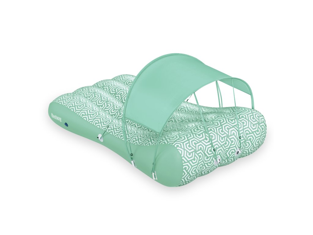Nafukovací matrace se stříškou. Užijte si dokonalou relaxaci venku bez obav ze škodlivých účinků slunečního záření díky naší nafukovací matraci s odnímatelnou stříškou. Tato inovativní matrace byla navržena tak, aby vám poskytla maximální pohodlí a ochranu před intenzivním sluncem. Je vybavena dvěma vzduchovými komorami pro zvýšenou stabilitu. Pohodlná opěrka hlavy umožňuje perfektní relax jak ve vodě, tak na souši. Rychlovypouštěcí ventily usnadňují rychlé nafouknutí a vyfouknutí, což z této matrace činí extrémně praktickou volbu.