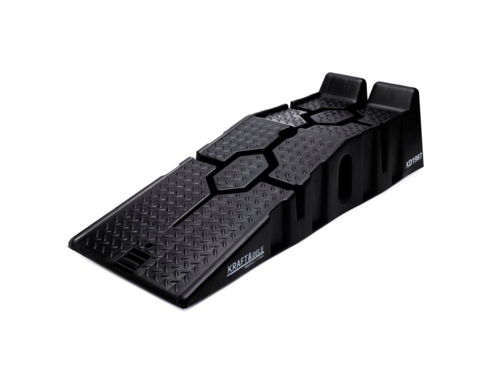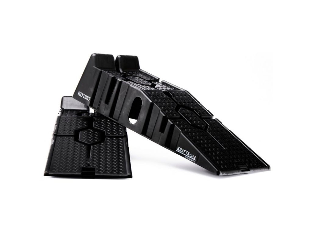Profesionální sada dvou automobilových ramp Kraft&Dele, sloužící ke spolehlivému a bezpečnému zvednutí vozidla. Tato položka nabízí bezpečný a stabilní přístup ke spodní části vašeho vozu, což usnadňuje opravy.