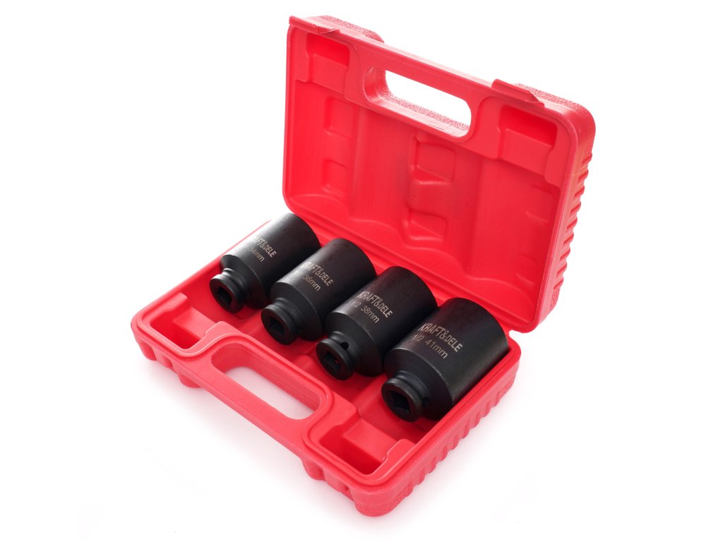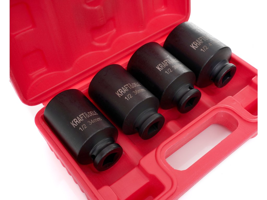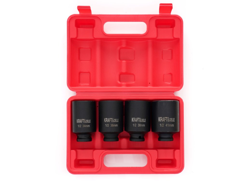 Nasadki wykonano ze stali chromowo-molibdenowej Cr-Mo, która charakteryzuje się wysoką odpornością na obciążenia udarowe oraz długą żywotnością. Zestaw sprawdzi się w warsztatach samochodowych, serwisach oraz w pracach montażowych, gdzie liczy się trwałość i niezawodność. Komplet zawiera 4 nasadki w najpopularniejszych dużych rozmiarach, co ułatwia dobór odpowiedniego narzędzia do konkretnego zadania.