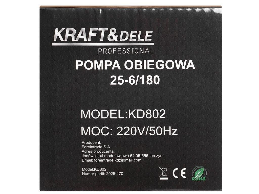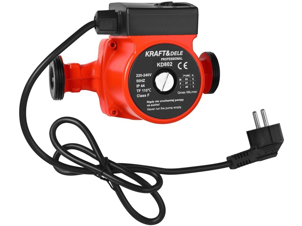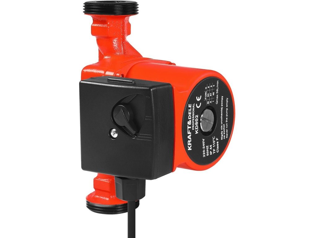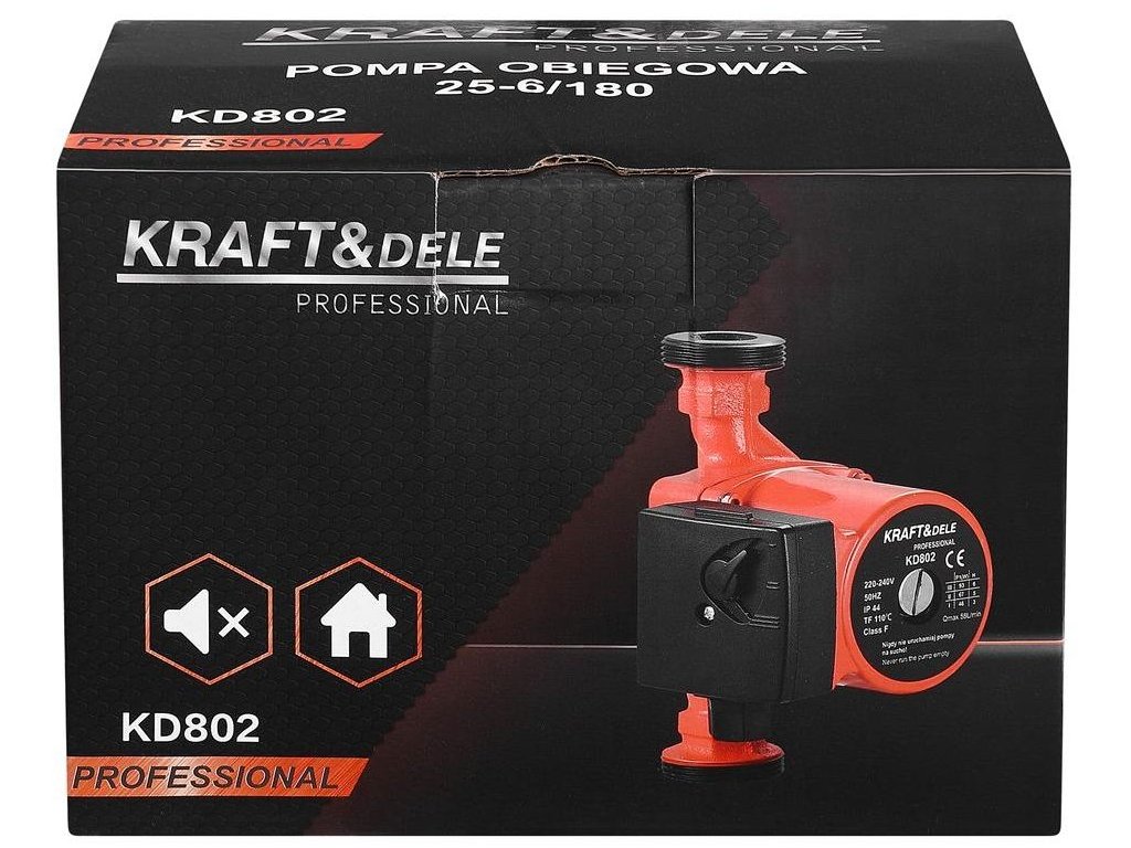 KRAFT&DELE KD802 je moderní oběhové čerpadlo s tichým chodem a vysokou účinností. Skvěle se hodí pro topenářské systémy, kde je důležitá spolehlivost a úspora energie. Díky kompaktní konstrukci a pevné kvalitě zpracování zaručuje dlouhou životnost a bezproblémový provoz. Čerpadlo dosahuje maximální výšky zdvihu 6 m a průtoku 58 l/min. Nízká hladina hluku pod 40 dB(A) zajišťuje tichý a pohodlný provoz, který neruší domácí prostředí.