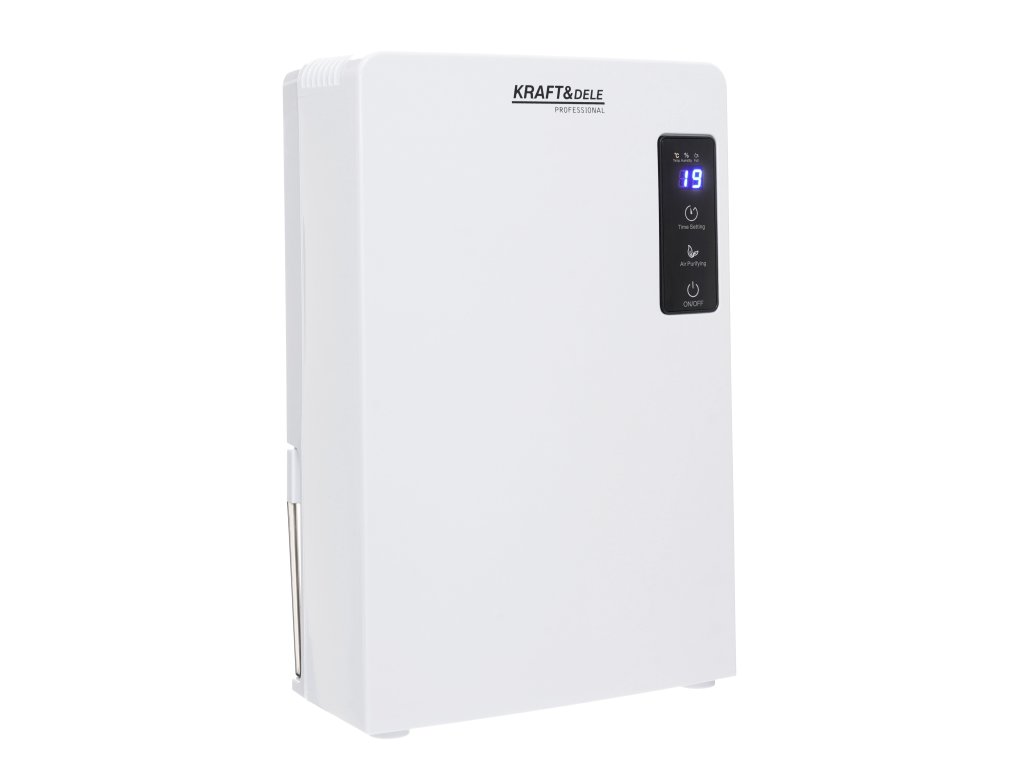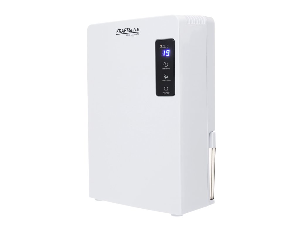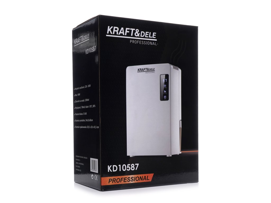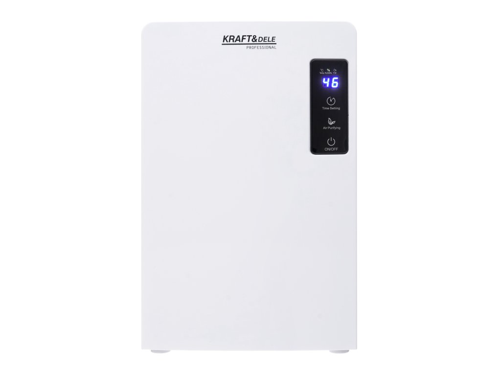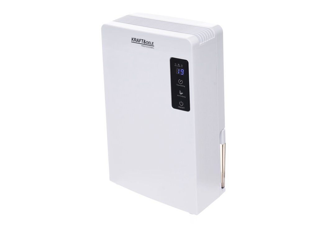 Odvlhčovač vzduchu Kraft&Dele, model KD10587, využívá Peltierovu technologii (bez kompresoru), díky čemuž je lehký a tichý. Ideální do malých místností, např. kanceláře, koupelny, pokoje. Mini odvlhčovač chrání před nežádoucí vlhkostí.