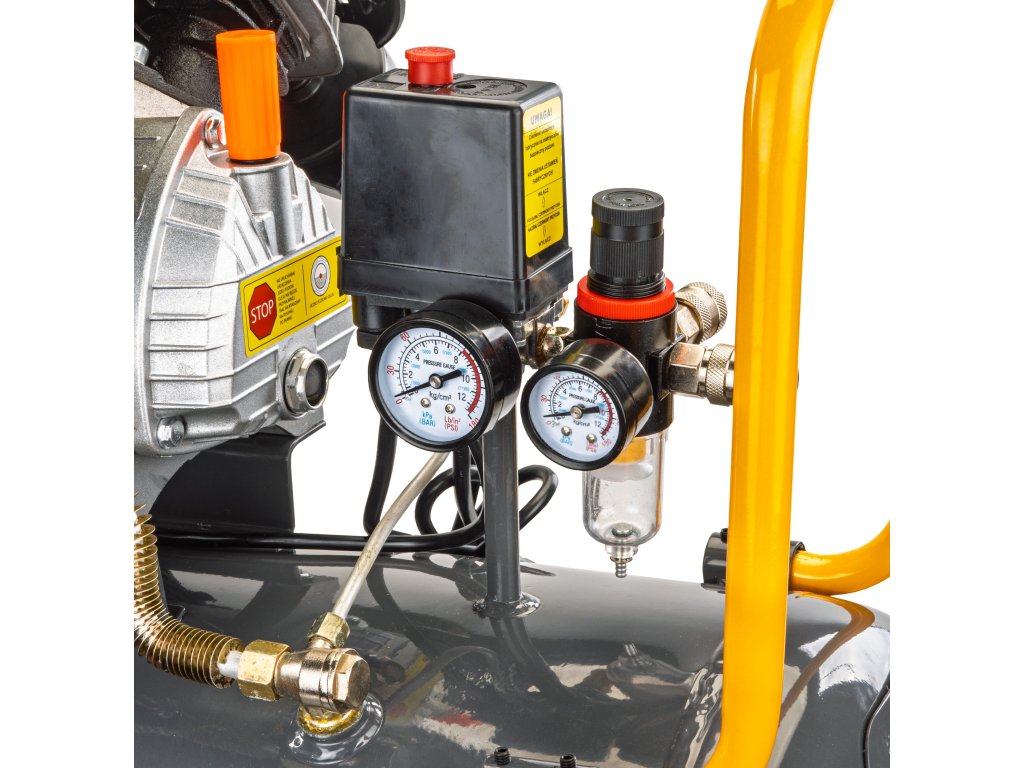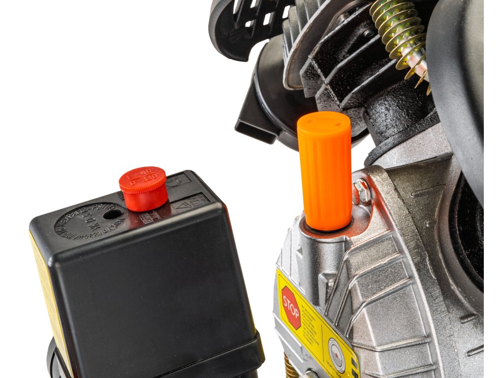 Bezpečnost je u tohoto modelu prioritou. Automatický tlakový spínač udržuje tlak v nádrži v optimálním rozsahu (vypnutí při 8 barech, zapnutí pod 6 barů) a certifikovaný bezpečnostní ventil spolehlivě chrání před přetlakem. Integrovaná tepelná ochrana motoru pak zaručuje dlouhou životnost zařízení. S kompresorem obdržíte i kompresorový olej a samozřejmě plný návod v českém jazyce. Na tento produkt poskytujeme záruku 24 měsíců.