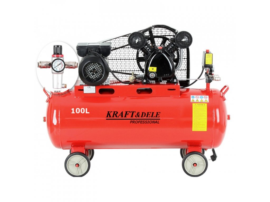 Olejový kompresor 100L KD1472 je zařízení s mnoha možnostmi využití, které bude perfektní jak pro profesionální dílny, tak pro domácí kutily. KD1472 je vybaven velmi účinným dvoupístovým motorem s výkonem 3,8 HP. Je vhodný pro použití s většinou pneumatických zařízení na trhu pro lakování, čištění nebo foukání. Zvětšený průměr kompresoru přispívá k vysoké účinnosti proudění vzduchu a tím zabraňuje ucpávání nečistot. Separátor - zachycuje olej a vodu ve vyfukovaném vzduchu.