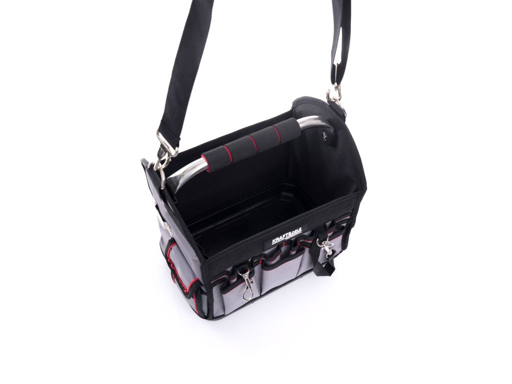 Otevřená brašna na nářadí s pevnou základnou je ideálním organizérem pro všechny montéry (elektrikáře, instalatéry, obkladače, tesaře atd.)