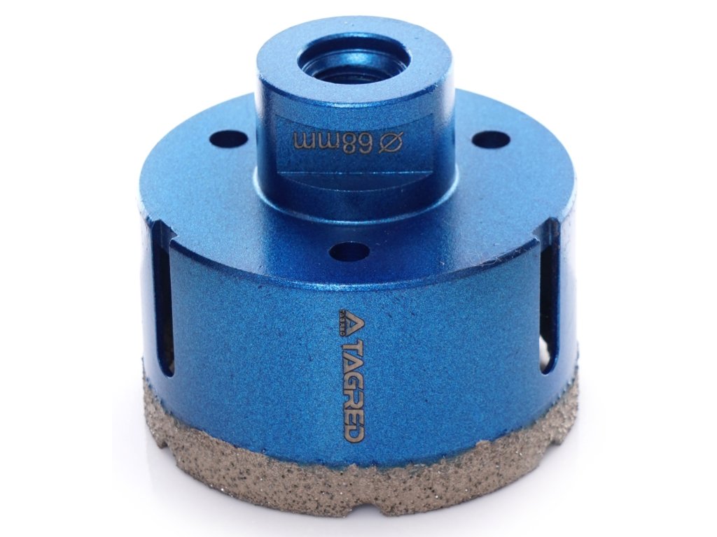 Samochłodzące i wydajne wiertła diamentowe do pracy na sucho, przeznaczone do wiertarek i szlifierek kątowych umożliwiają czyste wiercenie we wszystkich rodzajach płytek bez stosowania chłodzenia wodą. Profesjonalne koronki diamentowe zostały osadzone w technologii próżniowego lutowania. Są cenione za szybkość wiercenia w bardzo twardych materiałach. Boczne otwory wentylacyjne otwornic przyspieszają wiercenie i usuwanie materiału.