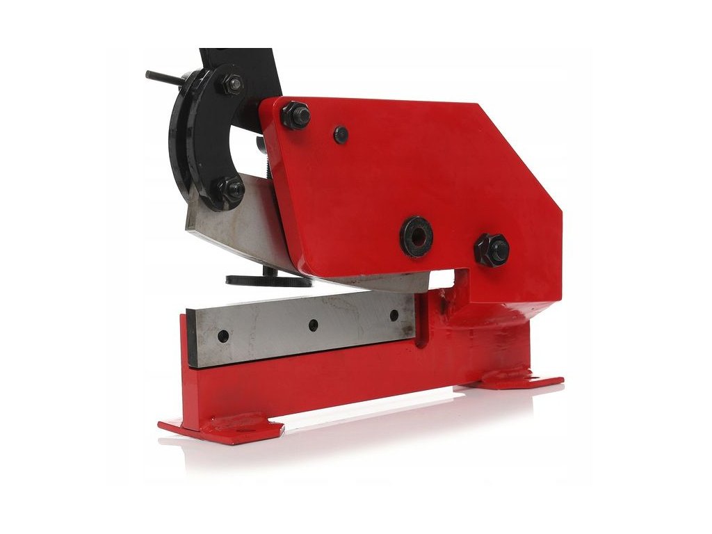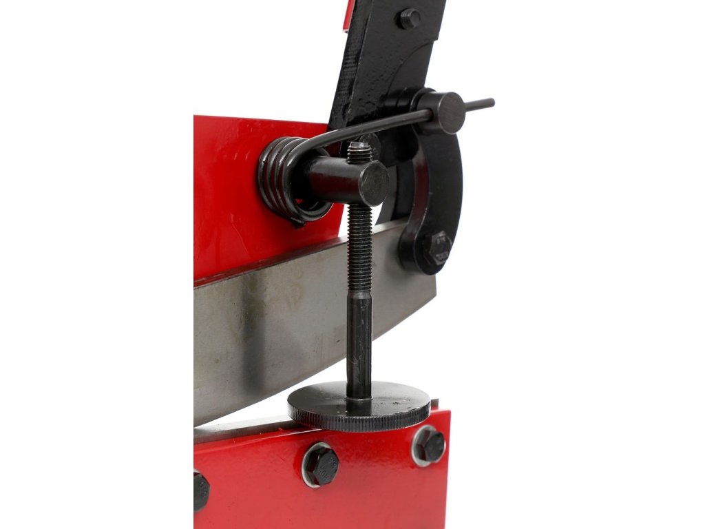 Pákové stolní nůžky je určena pro řezání plechů, tyčí a plochých tyčí. Díky vylepšené konstrukci zařízení umožňuje efektivní řezání s minimální námahou. Nastavitelný doraz usnadňuje řezání a zvyšuje bezpečnost práce. Čepel z kalené nástrojové oceli a tělo zařízení vyrobené ze stabilních ocelových desek zaručují dlouhou životnost a vysokou odolnost.