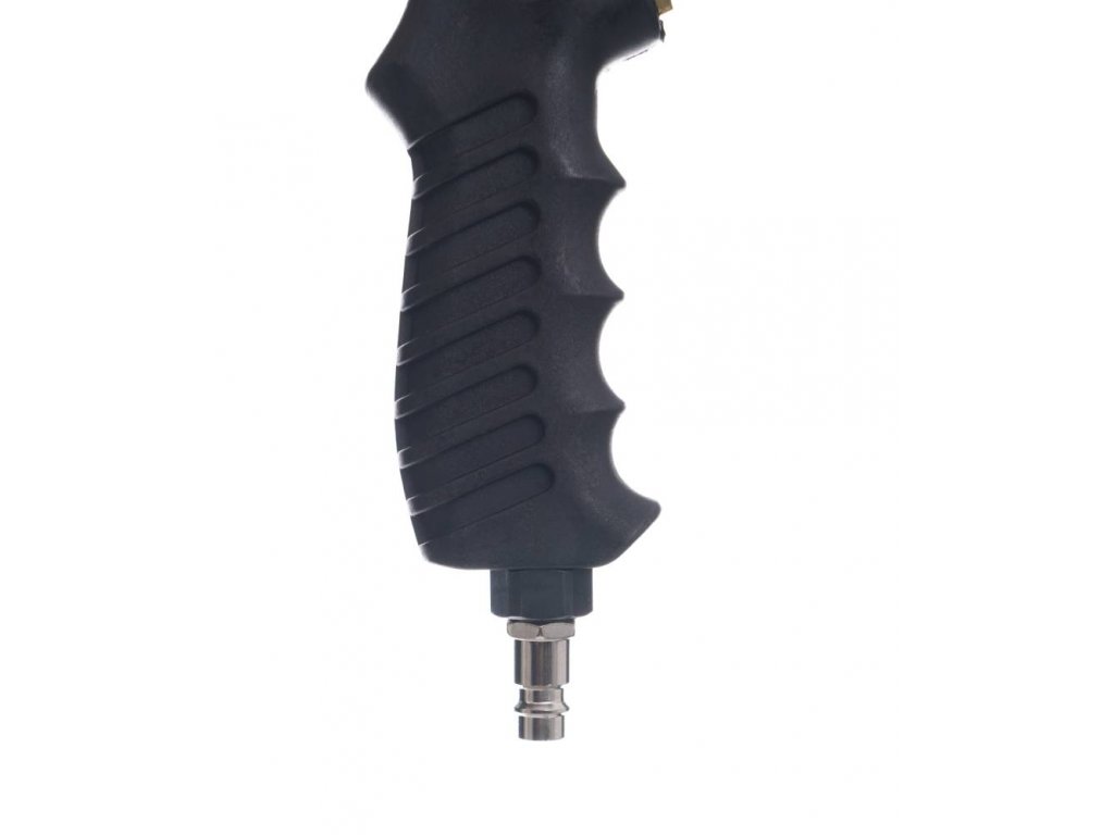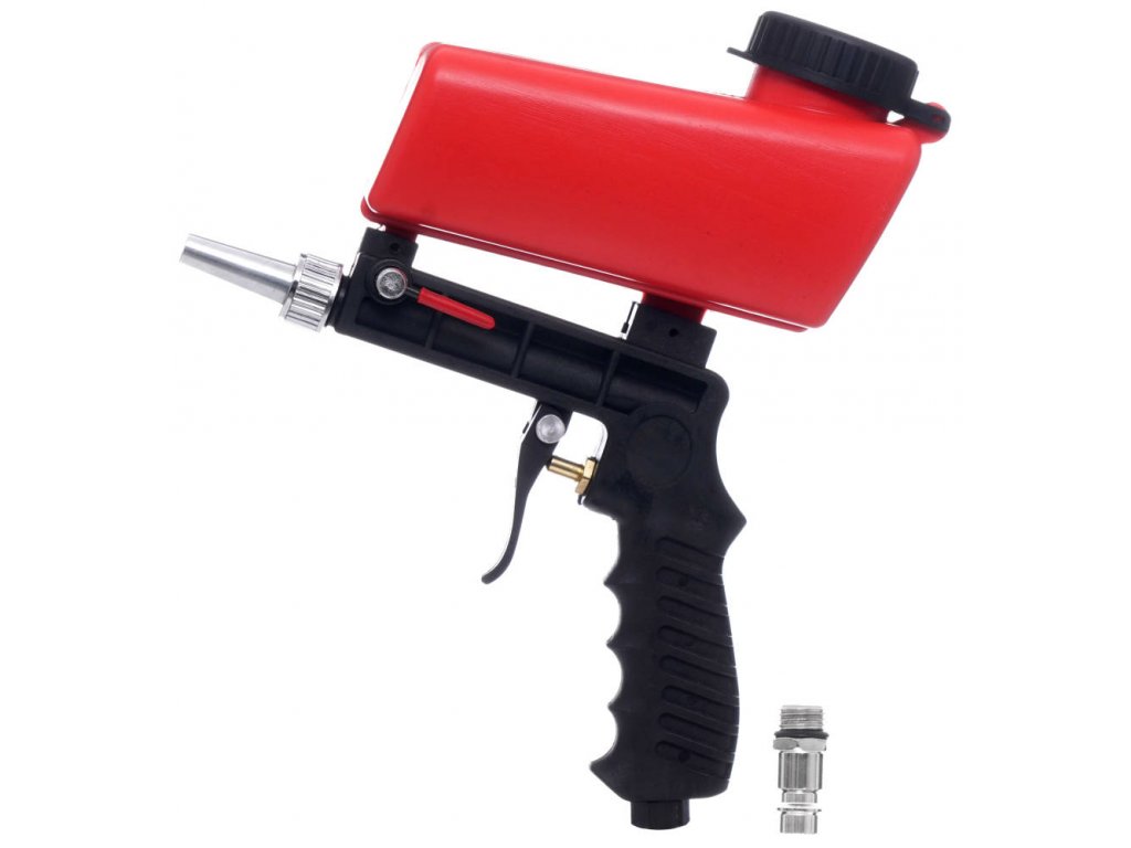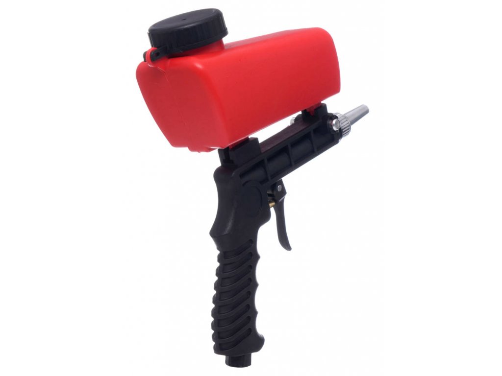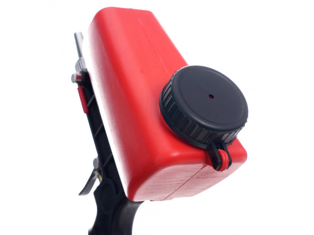 - díky tomu, že je zásobník umístěn nahoře, se písek dostává do pistole samospádem, což zaručuje menší potřebu vzduchu než u klasických pískovacích pistolí