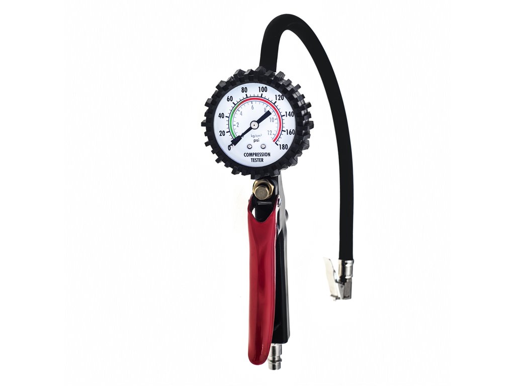 Hlavní předností je jeho robustní konstrukce, která zaručuje dlouhou životnost a odolnost proti mechanickému poškození. Srdcem přístroje je přesný manometr s jasnými stupnicemi BAR a PSI, který je navíc chráněn odolným gumovým pouzdrem. Toto pouzdro efektivně absorbuje nárazy a chrání manometr před poškozením, což zajišťuje jeho spolehlivost i v náročných podmínkách dílny. Díky tomu budete mít vždy jistotu správného tlaku v pneumatikách.