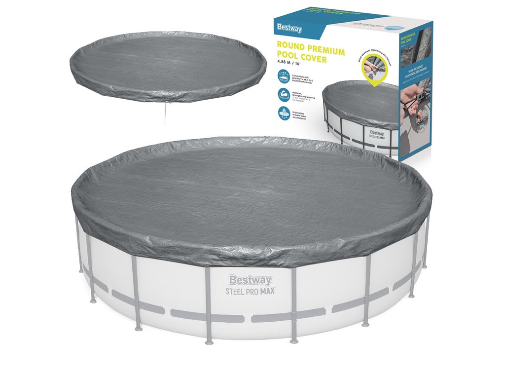 Pro optimální funkci instalujte plachtu na bazén s vodou naplněnou min. na 90 %. Chrání před běžnými nečistotami. Při silném větru či srážkách bazén zabezpečte nebo plachtu dočasně sejměte. Zveme vás do obchodu Jokomisiada, kde najdete široký výběr bazénového příslušenství a mnoho dalšího! Jsme oficiálním českým distributorem značky Bestway.