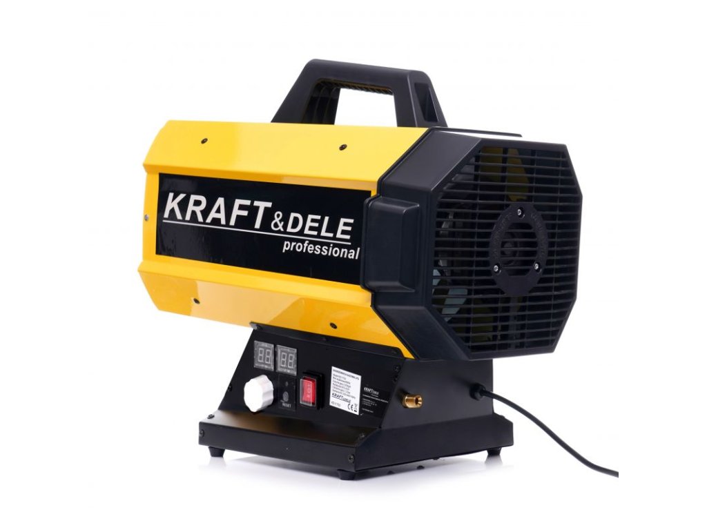 Topný ventilátor Kraft & Dele model KD11731 s výkonem 25 KW na propan-butanový plyn (LPG). Topidlo má vestavěný termostat s regulací teploty a digitální displej, díky kterému můžete rychle a jednoduše nastavit požadovanou teplotu okolí. Ohřívač pracuje automaticky v závislosti na nastavení teploty.
