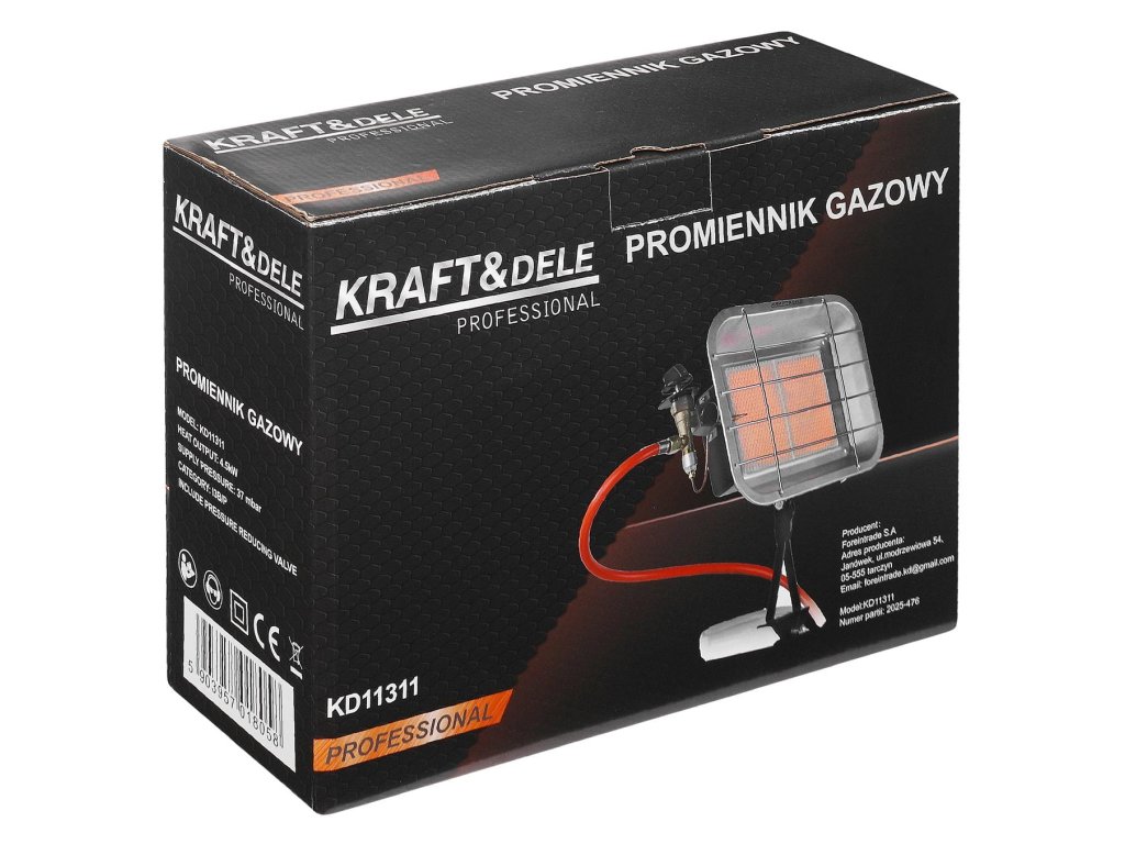 KD11311 je spolehlivý plynový zářič, ideální pro vytápění otevřených a polouzavřených prostorů – například dílen, skladů, hal nebo stavenišť. Vyznačuje se jednoduchou konstrukcí, vysokou účinností a bezpečným provozem. Zářič je vybaven keramickým hořákem, který zajišťuje rovnoměrné rozložení tepla, a pevnou ochrannou mřížkou pro vyšší bezpečnost. Díky plynulé regulaci výkonu lze snadno nastavit intenzitu ohřevu podle aktuálních potřeb. Model KD11311 má bezpečnostní ventil, ovládací knoflík a stabilní stojan se šroubem typu Y bolt, který umožňuje pevné a bezpečné umístění zařízení během provozu.