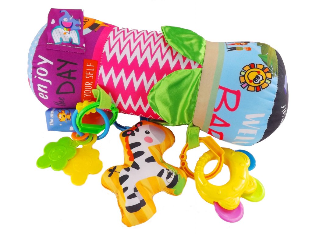 Malé děti si s hračkami ještě nehrají, ale poznávají svět. Válec s šustícími prvky a chrastítkem Vás určitě zaujme a zaujme i Vaše dítě. Jeho pozornost upoutají zajímavé šumivé zvuky a zářivé barvy. Stabilizační váleček je ideální pro péči o Vaše dítě. Roztomilé živé barvy a šumivé prvky rozšíří obzory dítěte. Váleček lze použít několika způsoby – jako váleček pro učení plazit se po bříšku, naučit se chodit i třeba jako polštář pro dítě. Hračka má také stimulační funkci, rozvíjí zrak, sluch a dotek.