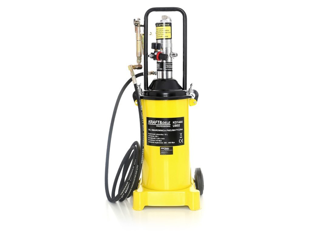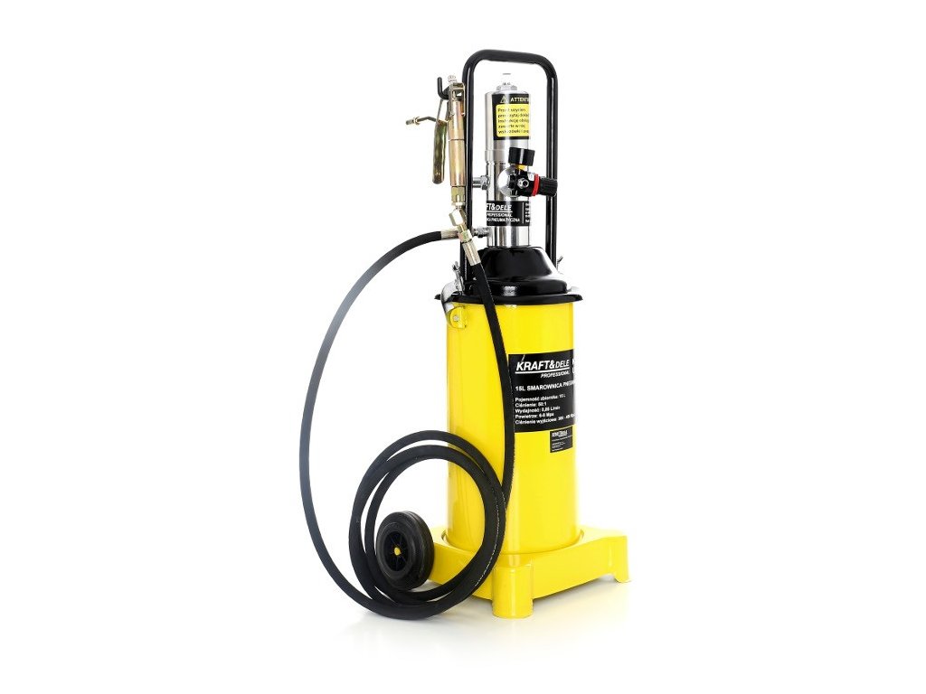 Pneumatická maznice 15 l / 0,85 l/min. Velká kapacita 15L zaručuje nepřetržitý provoz bez nutnosti únavného doplňování nádrže.