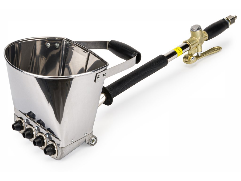 Omítací pistole PM-TP-3T je vyrobena z prvotřídní nerezové oceli a lehkého, ale odolného hliníku, což zaručuje dlouhou životnost a odolnost proti opotřebení. Klíčové trysky jsou precizně zpracovány z vysoce kvalitní slitiny kovů, zajišťující dlouhotrvající bezporuchový provoz a konzistentní nanášení materiálu. Její promyšlená konstrukce se vyznačuje vysokou pevností a intuitivním ovládáním, minimalizujícím únavu a maximalizujícím produktivitu.