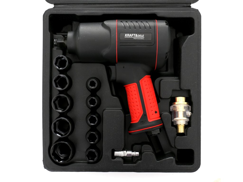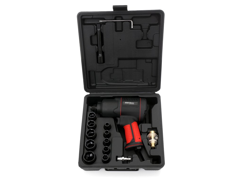 Pneumatický rázový utahovák odolný a výkonný s vysokým krouticím momentem 1 200Nm, vám umožní bez problémů povolit i ty nejpevněji utažené šrouby. Vyrobeno z nejkvalitnějších materiálů. Dvoj spojka TWIN HAMMER. Pneumatický klíč zabalený v praktickém kufříku se 17 díly.