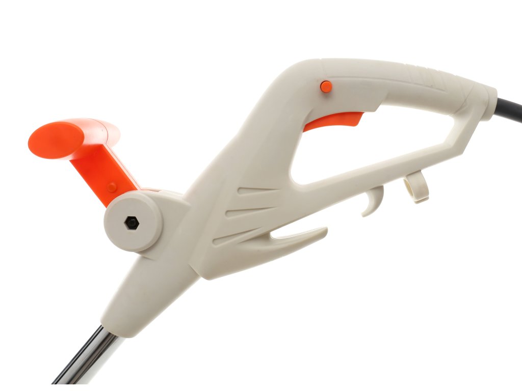 Podkaszarka wyposażona została w osłonę, która chroni ją przed uszkodzeniami podczas koszenia przy murze czy ogrodzeniu. Posiada również wygodny uchwyt ułatwiający manewrowanie urządzeniem, a także regulacja rękojeści.