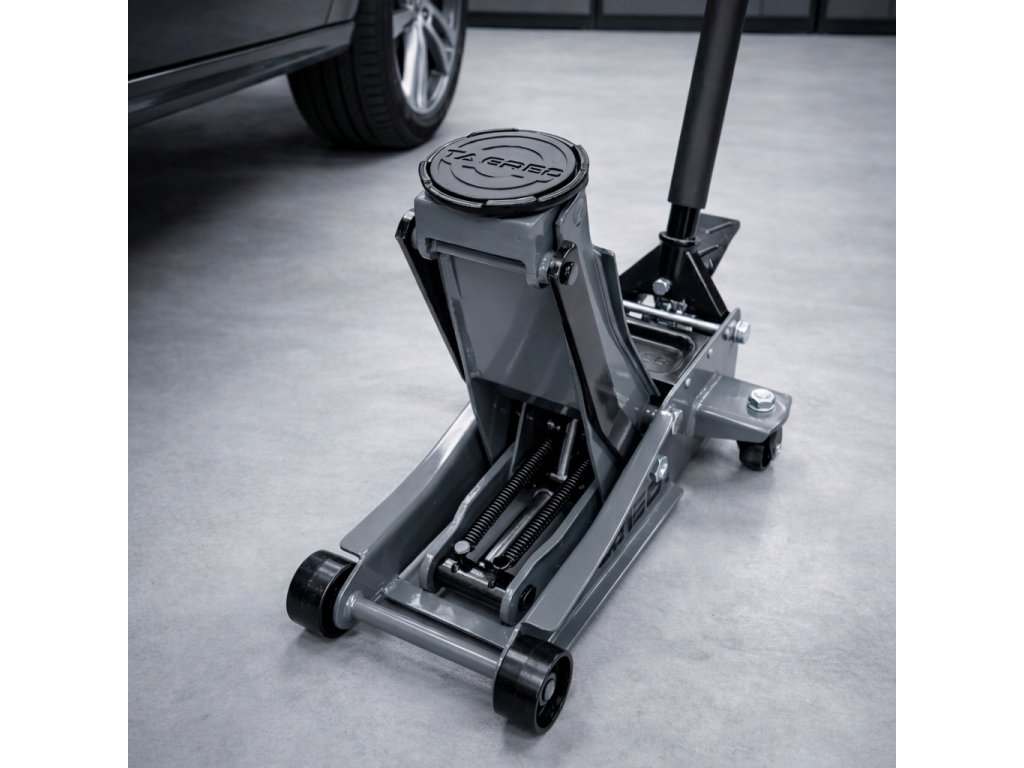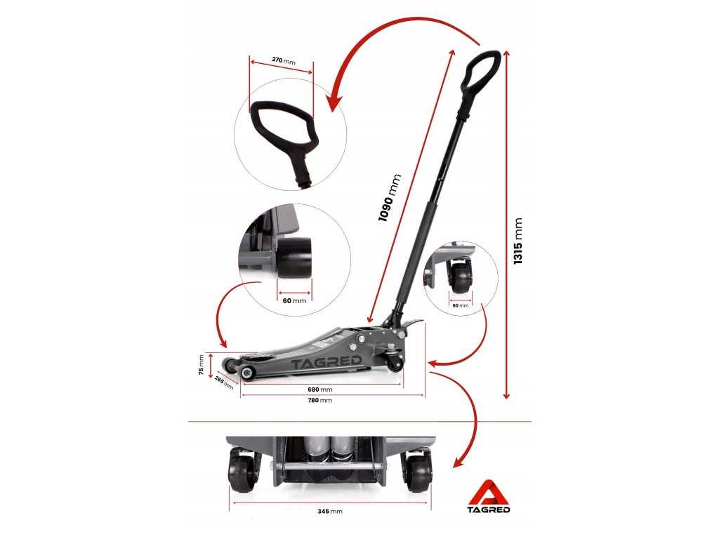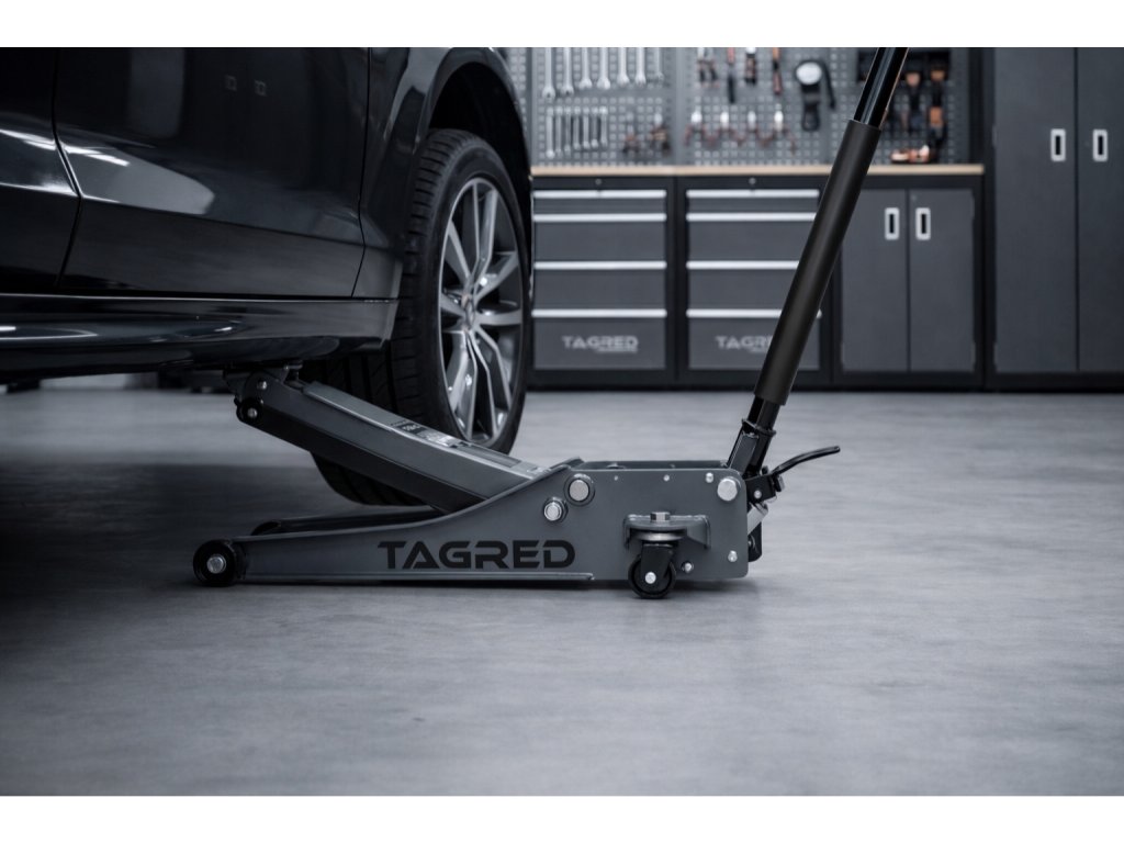 Podnośnik typu “żaba” od TAGRED wyposażony jest w trwałe, metalowe kółka, które nie załamią się pod ciężarem auta, nawet podczas długiej eksploatacji warsztatowej. Podnośnik oparty jest o solidny szkielet, dzięki któremu bez problemu wytrzyma nawet wiele sezonów w Twoim warsztacie/wulkanizacji.