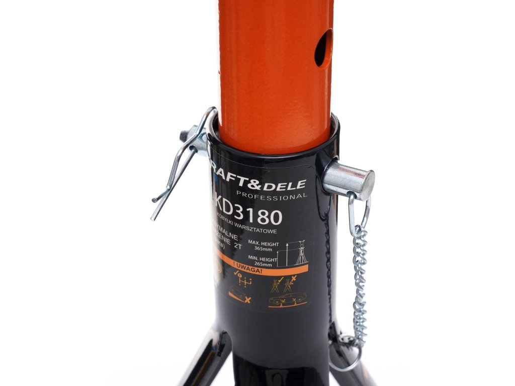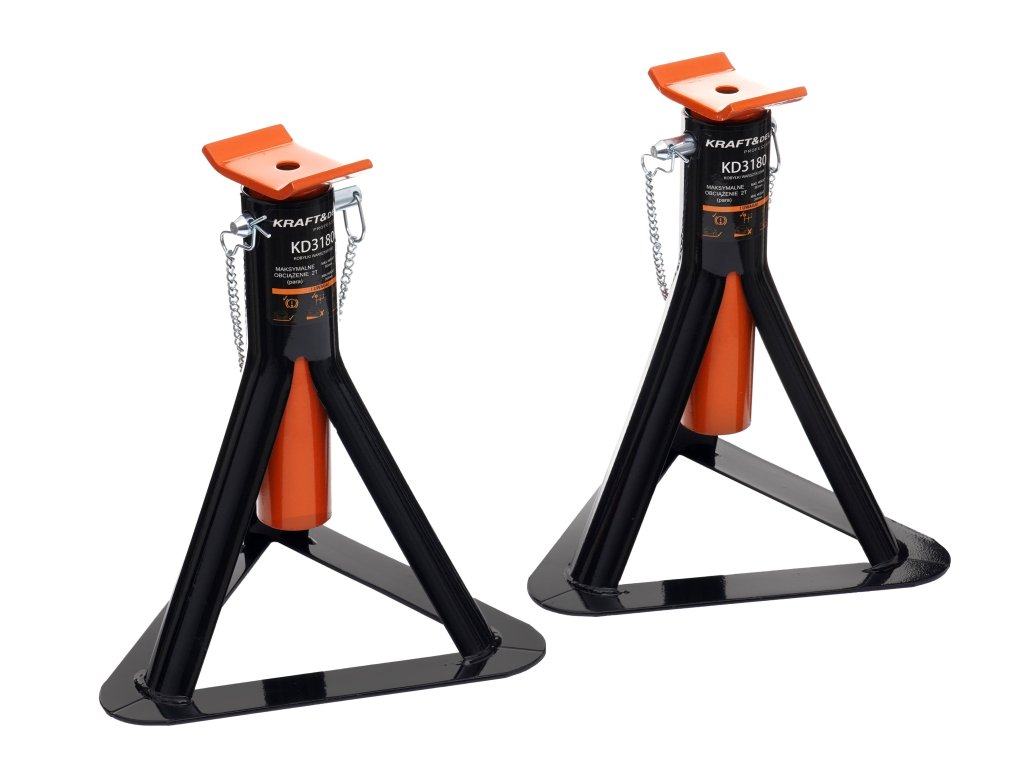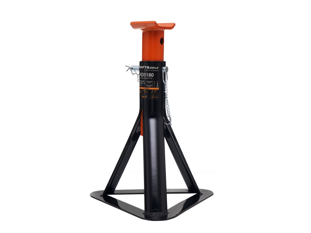 Stojany pro nákladní vozidla KD3180 s maximální nosností 2 tuny jsou vyrobeny z vysoce kvalitní oceli odolné vůči mechanickému poškození, ohýbání a dílenským chemikáliím. Zajistí stabilní zvedání za všech podmínek. Třínohá konstrukce s vnitřními opěrkami účinně zabraňuje zaboření do země při práci se zátěží. Disponují třístupňovým nastavením výšky, což vám umožňuje snadno nastavit sedadlo do požadované polohy. Pojistný kolík zabraňuje náhodnému sklouznutí tyče a výrazně zvyšuje bezpečnost práce.