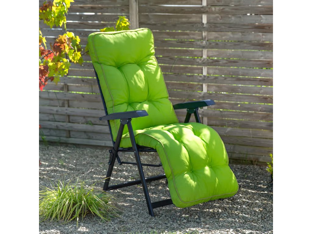 Polohovací zahradní křeslo s podnožkou Lena Plus D001-12BB. Rám s 28 nastavitelnými polohami, čtvercové opěradlo, konstrukce z oválných ocelových trubek 32x18 mm; malovaná práškovou barvou. Barva rámu: ČERNÁ. Křeslo má novou, zlepšenou konstrukci rámu - svařovanou v dolní části nohou - díky tomu je rám stabilnější a křeslo můžete využít také uvnitř domu. Prošívaný sedák, typ Box Model; výplň: řezaná houba Flock 8-10 cm. Vrch sedáku z bavlny, spodek z lustrasilu - spojené bavlněným páskem, obšitý barevným polyesterovým lemem, se šňůrkou. V horní části opěradla - kapsa pro upevnění k rámu, v dolní - gumový pásek.