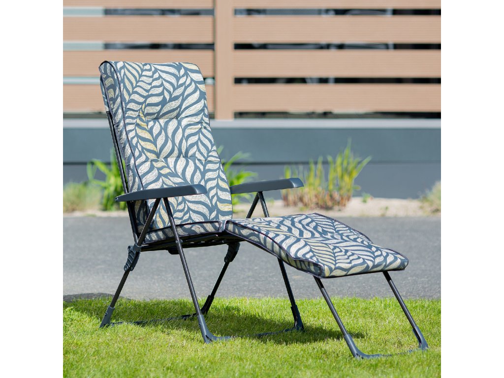 Zahradní lehátko/křeslo 2v1. Užijte si relaxaci na nejvyšší úrovni s naším zahradním lehátkem/křeslem, které je perfektním řešením pro jakýkoli venkovní prostor - zahradu, terasu i balkon. Konstrukce rámu je z ocelových trubek a je malovaná práškovou barvou. Jedinečný, 28polohový mechanismus vám umožní upravit polohu podle vašich individuálních preferencí a zajistit tak maximální bezpečnost a komfort používání. Všestrannost tohoto modelu umožňuje schovat podnožku pod sedadlem a přetvořit tak lehátko na pohodlné zahradní křeslo. Sedák je vyroben z vysoce kvalitní polyuretanové pěny. Vrchní část sedáku je vyrobená ze 100% polyesterového mikrovlákna, které zajišťuje měkkost a také jednoduchou údržbu. Spodek je z polypropylenu.