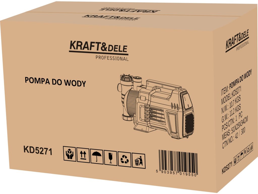 KD5271 to wydajna pompa ogrodowa marki KRAFT&DELE o mocy 1500W, przeznaczona do zasilania instalacji nawadniających oraz poboru wody ze zbiorników naturalnych i retencyjnych. Urządzenie doskonale sprawdzi się przy podlewaniu ogrodów, grządek warzywnych, obsłudze zraszaczy trawnikowych oraz dostarczaniu wody użytkowej.
