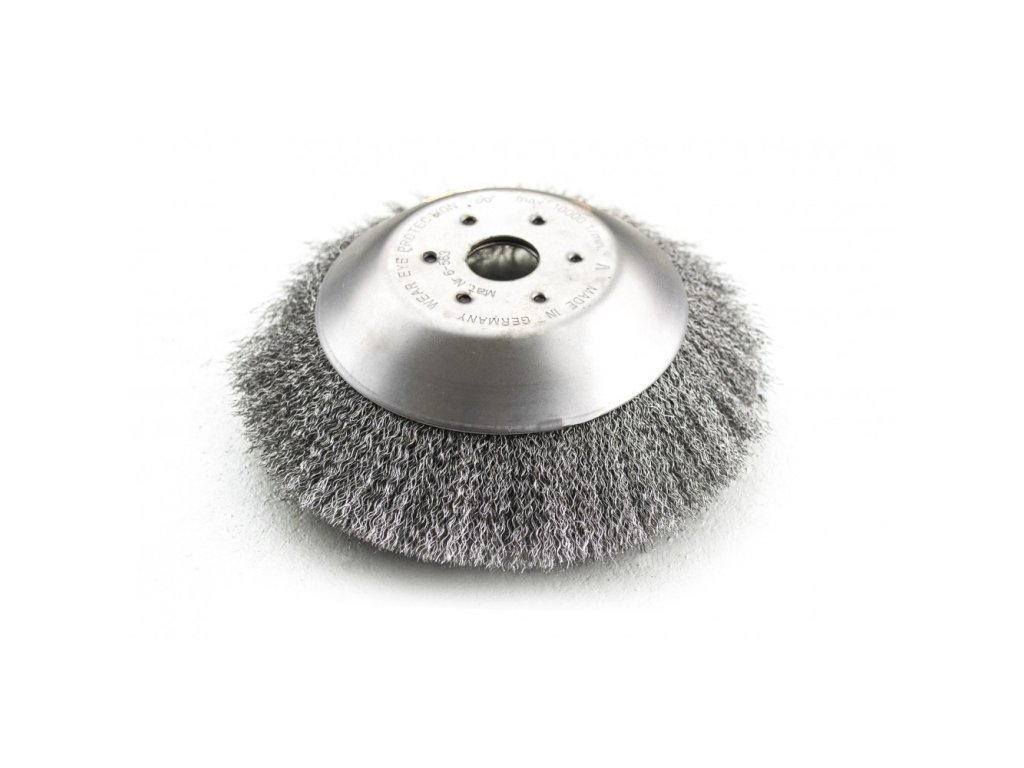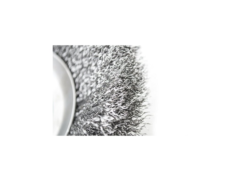 - Kartáčový kotouč vyrobený z vysoce kvalitní oceli, aby odolal namáhání odstředivou silou a velmi vysokým otáčkám až 10 000 ot/min.
