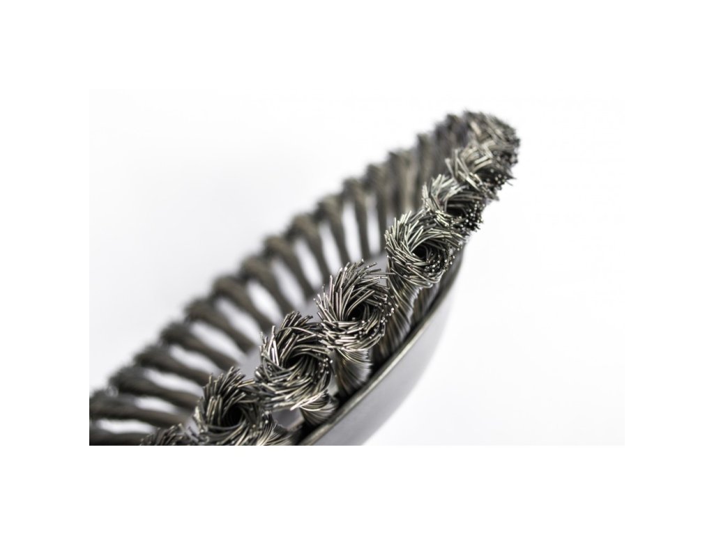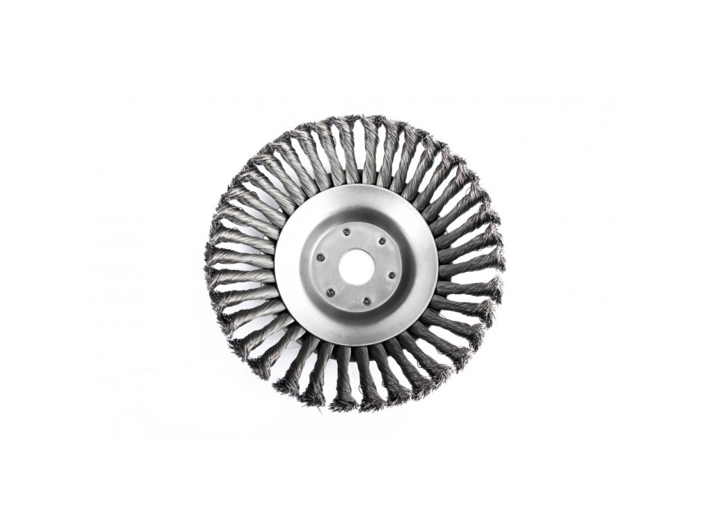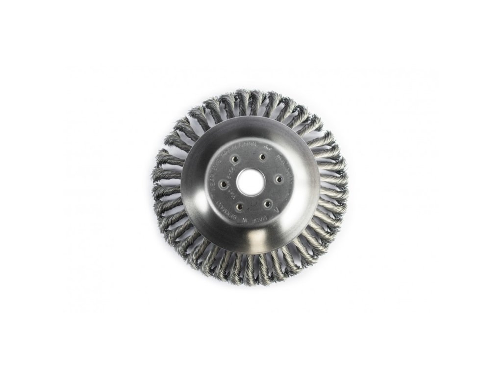 - Kartáčový kotouč vyrobený z vysoce kvalitní oceli, aby odolal namáhání odstředivou silou a velmi vysokým otáčkám až 10 000 ot/min.